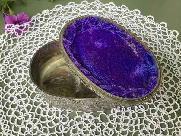 Verzilverd sieradendoosje met guirlandes, medaillon 12x5x6 cm
