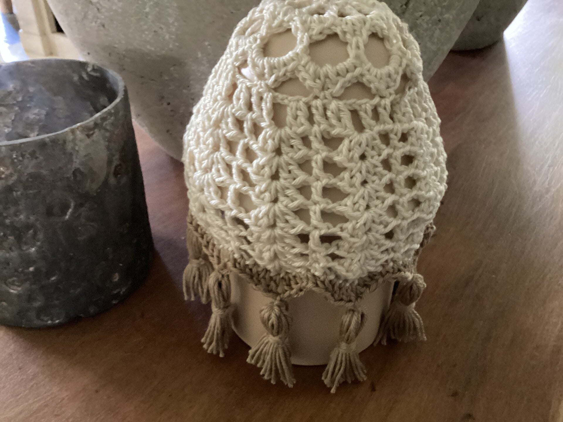 Gehaakt lampenkapje met kwastje en tafellampje 18 cm hoog