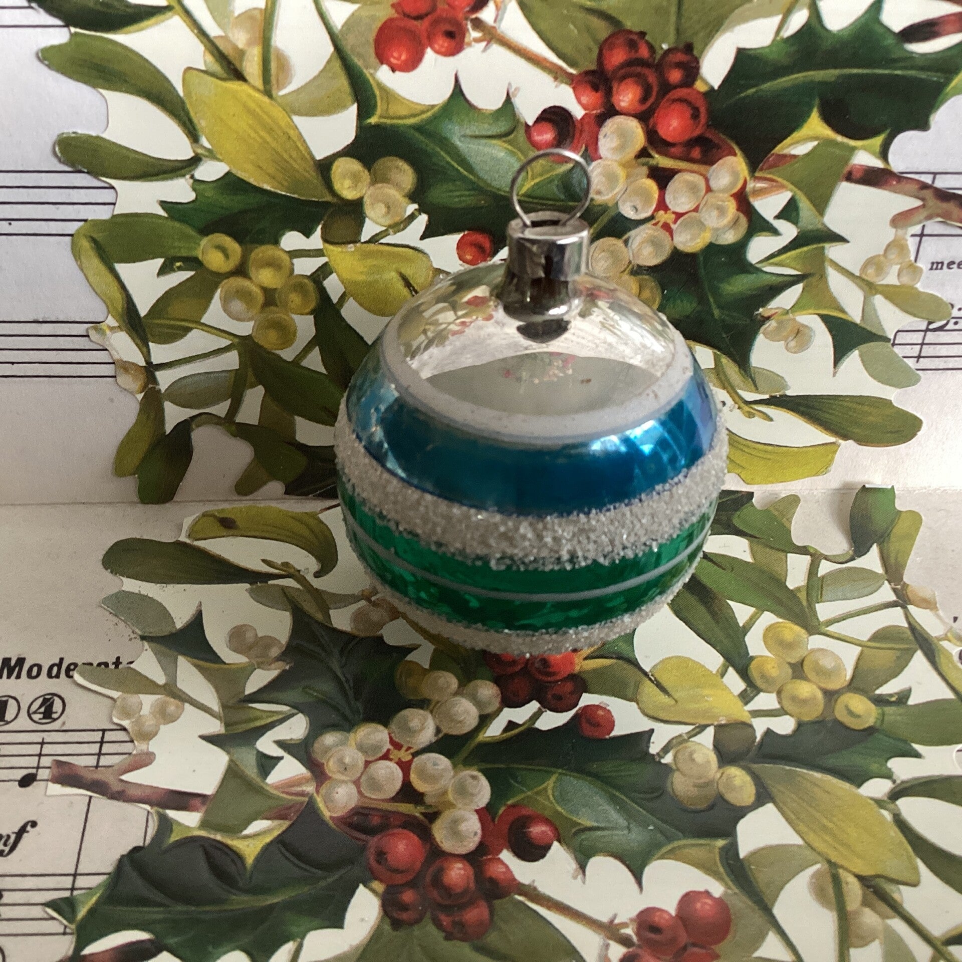 Antieke deukbal blauw groen gesuikerde rand 6 cm