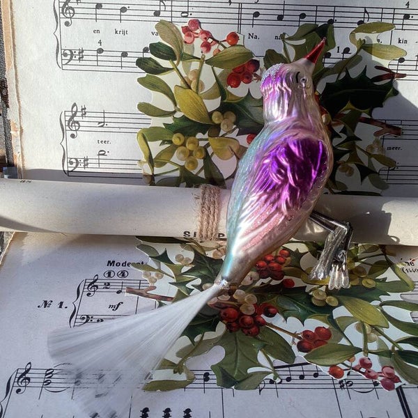Grote vogel, dubbele clip, fiberstaart 18x10x4 cm, kleurrijk