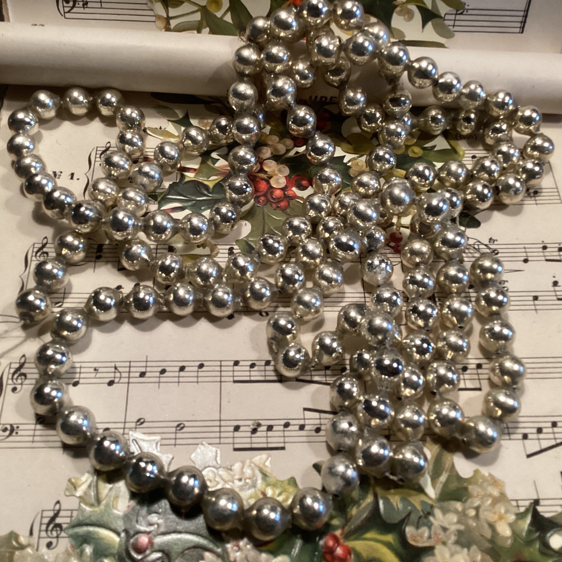 Kerstslinger van glas, zilver, enkele kraal, lengte 190 cm diam kraal 1 cm