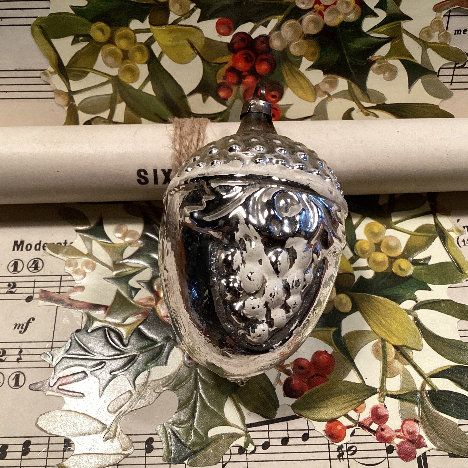Antiek ornament eikelvorm met druiventros, dubbelzijdig 7x5x5 cm