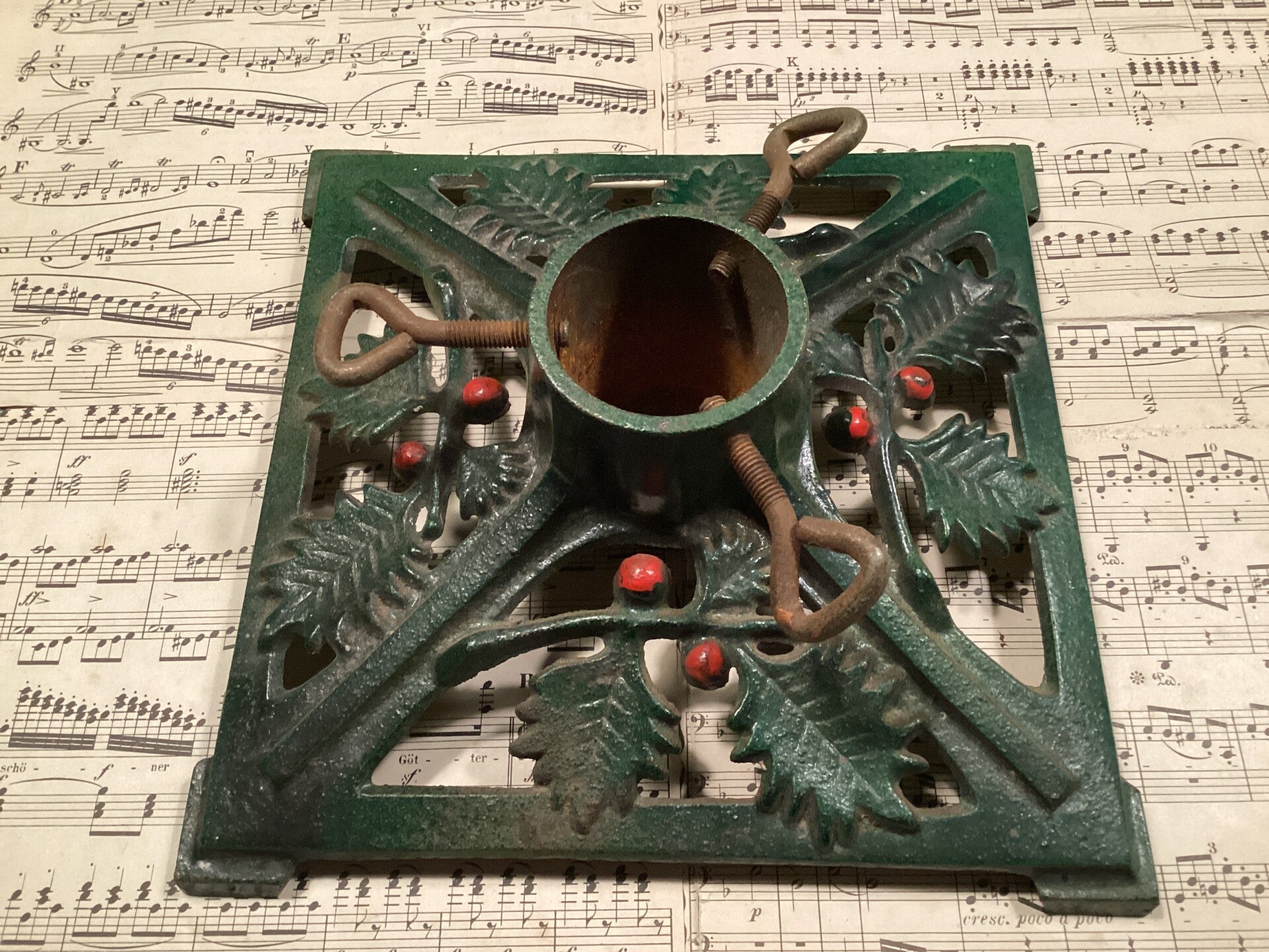Gietijzeren antieke kerstboomstandaard 20x20x7 cm, diam.4,5 cm stam