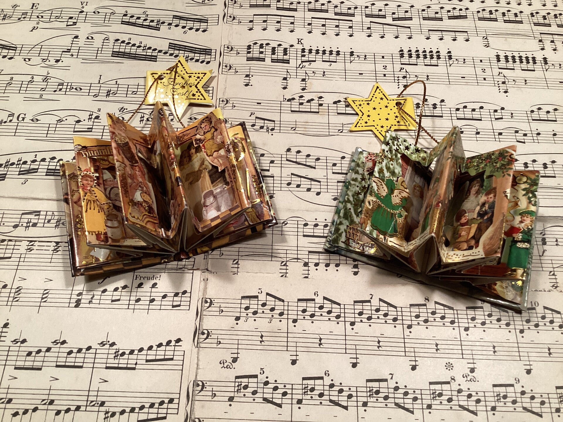Set van 2 vintage coppenrath pop up kersthangers boekjes stervorm 5x3x2 cm