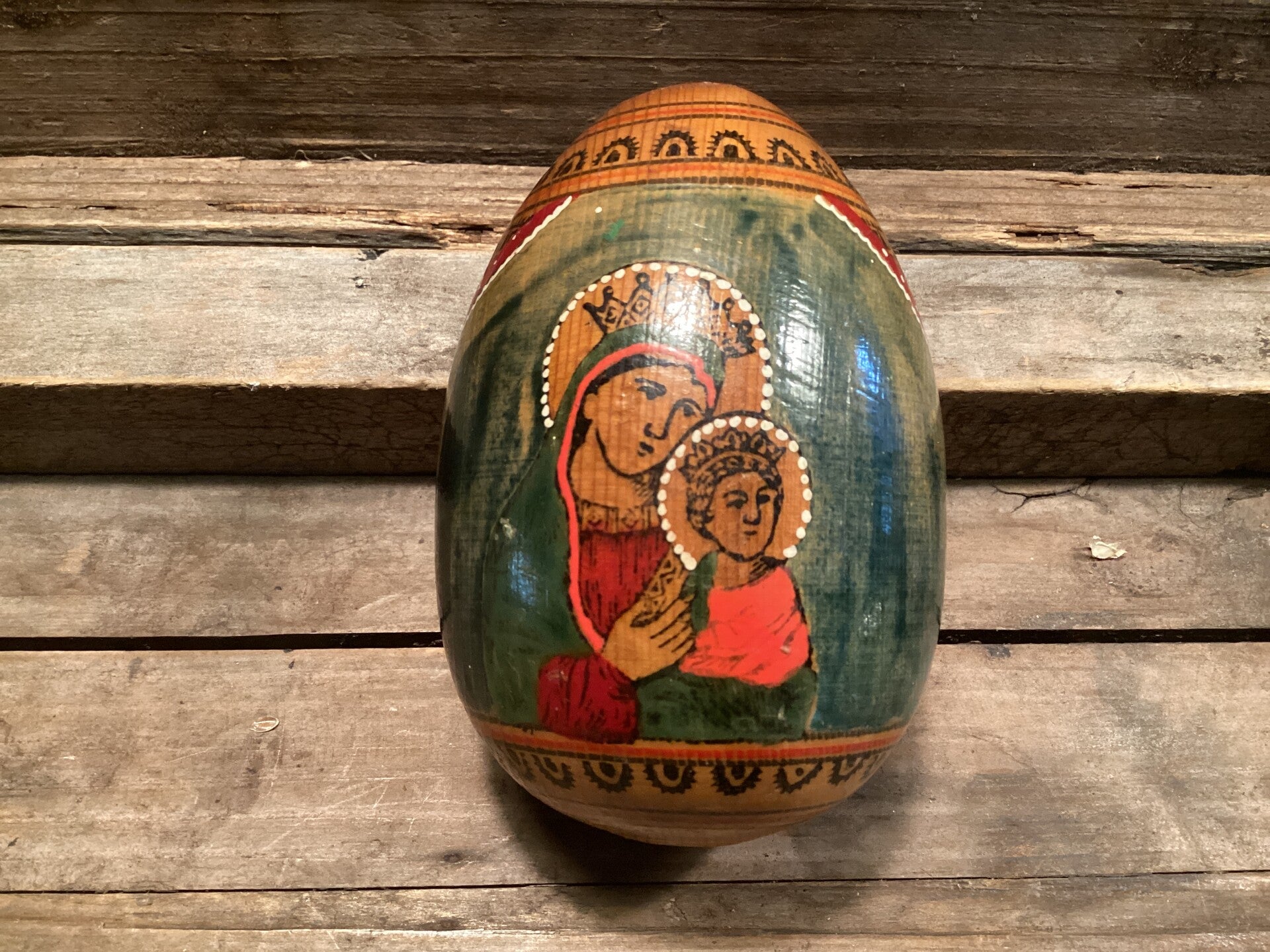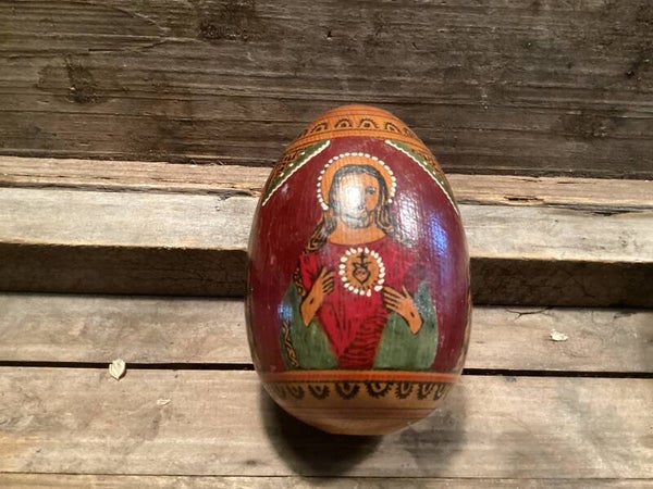 Antiek houten ei, handbeschilderd, 10x7 cm