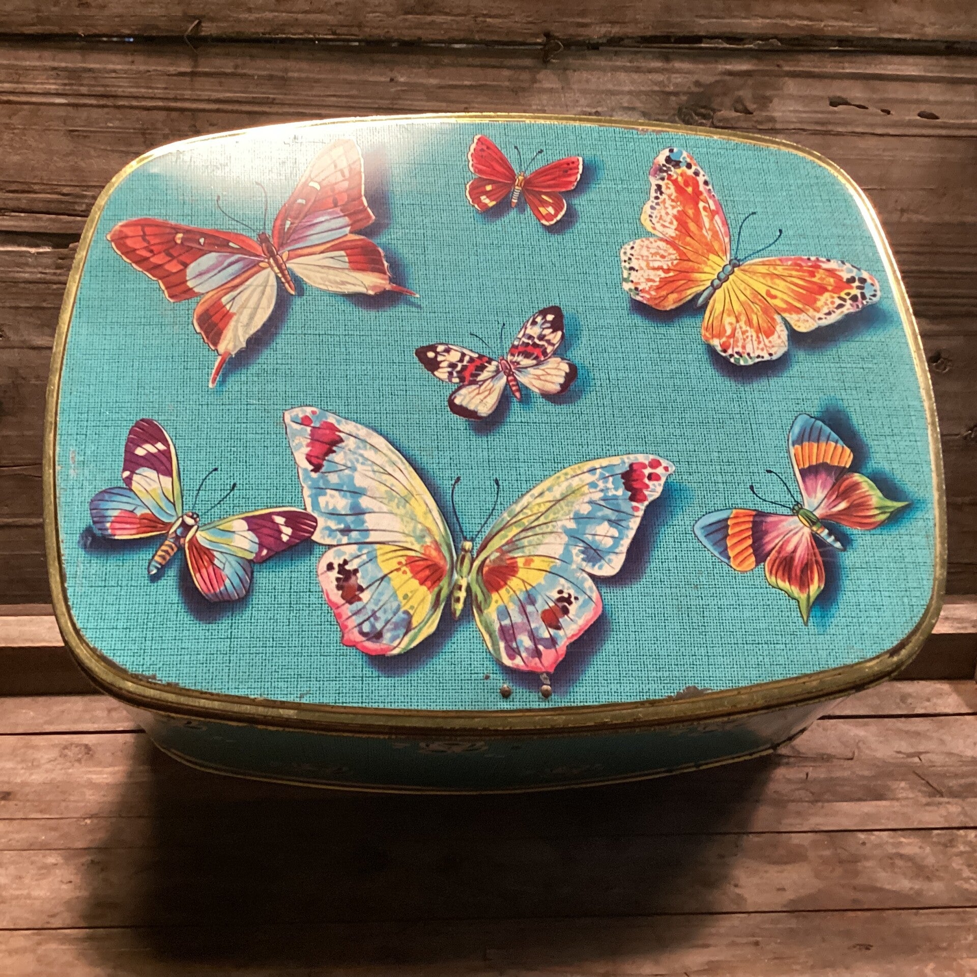 Groot vintage opberg blik vlinders, mooie staat, 30x13x23 cm