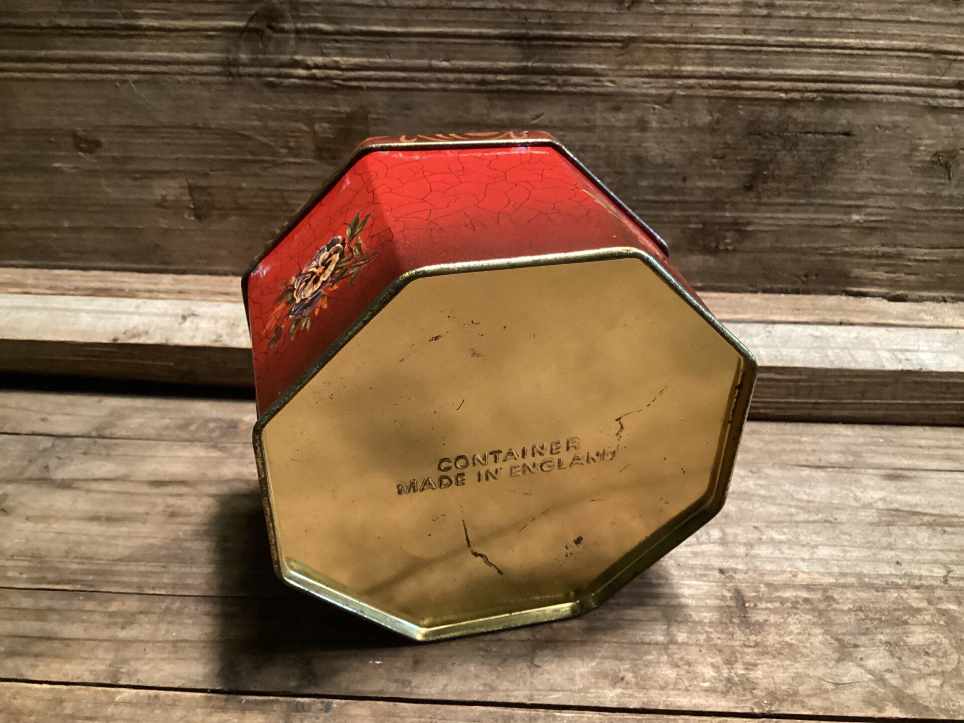 8 hoekig oud engels blik met bloemen 12x12x6 cm
