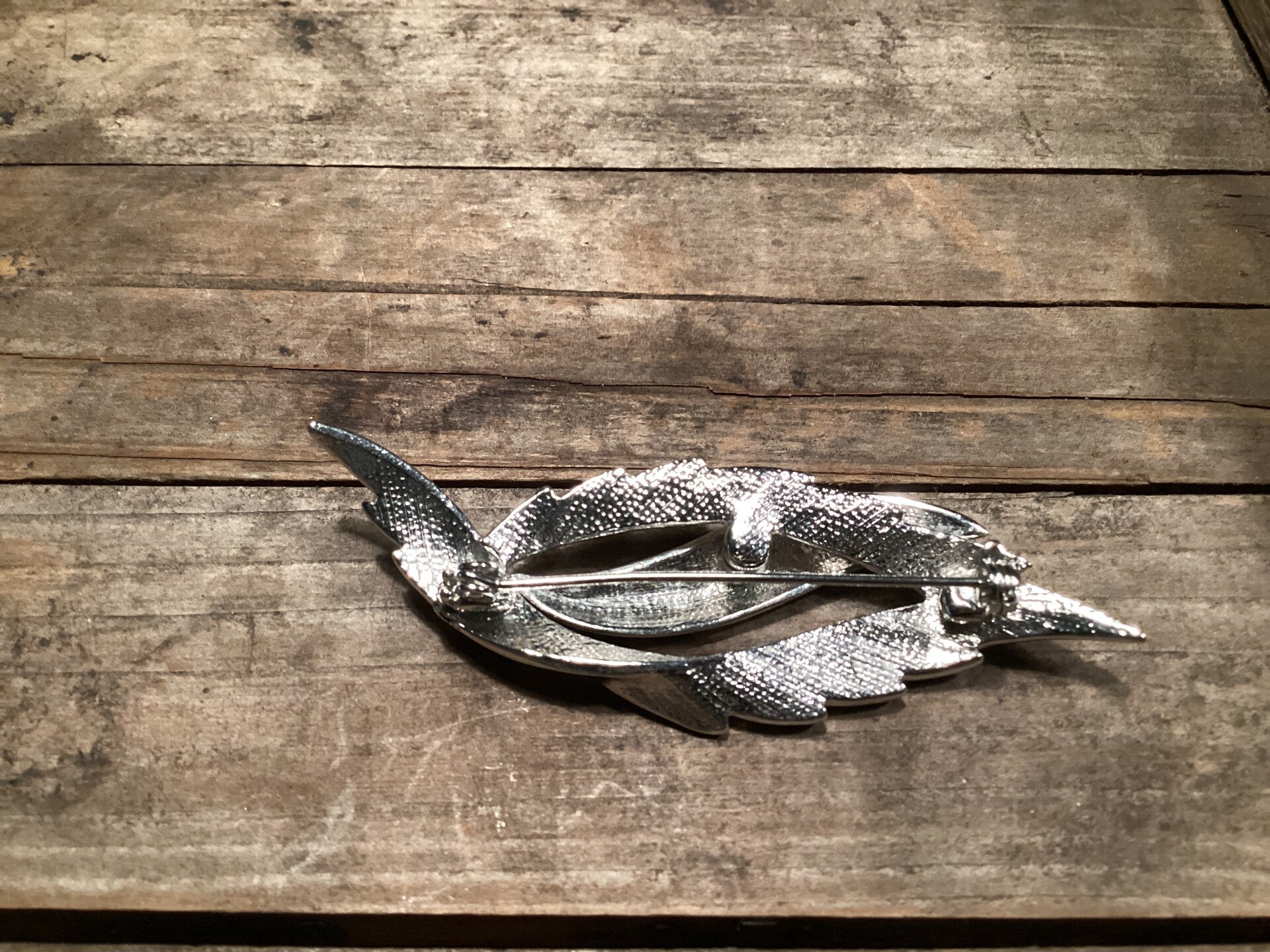 Mooie zilverkleurige broche 7x3 cm bladvorm