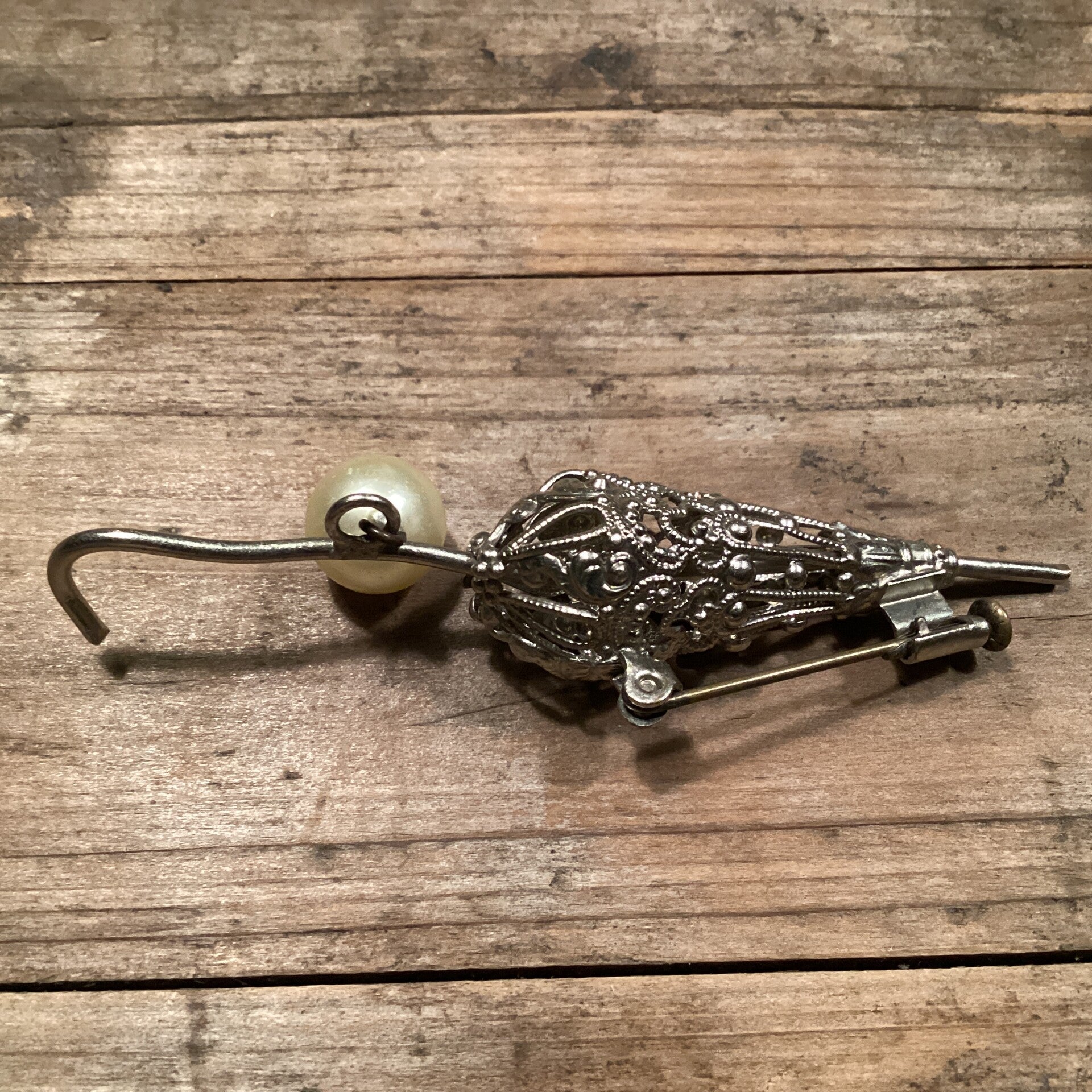 Antieke broche paraplu met pareltje, 7,5 cm, rond 1900