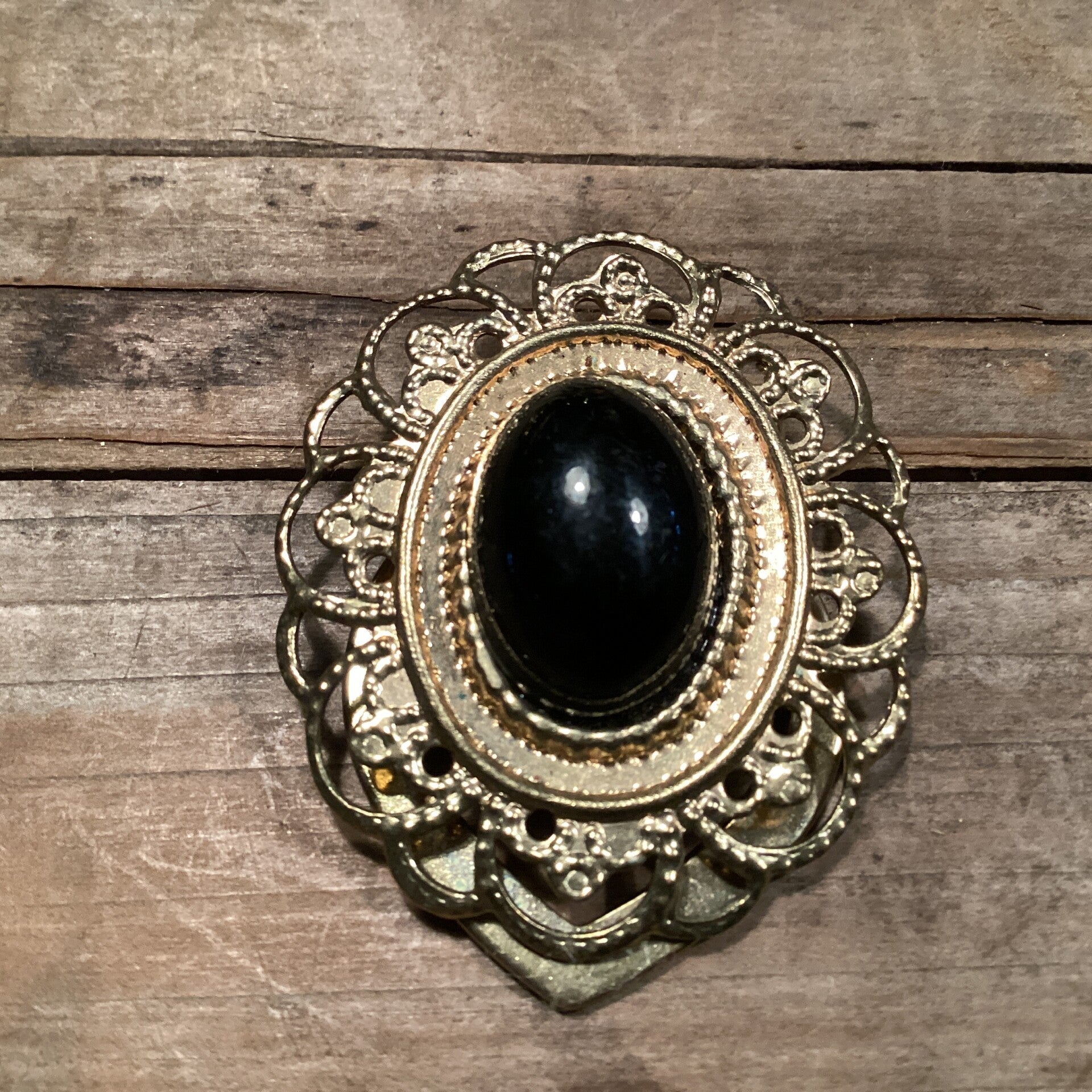 Vintage sjaalspeld met zwarte steen, 4x3,5 cm
