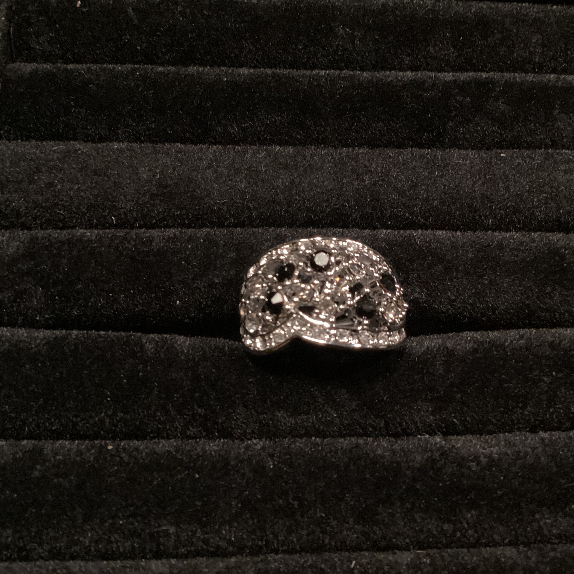 Ring met zwart en grijs strass opengewerkt, maat 16