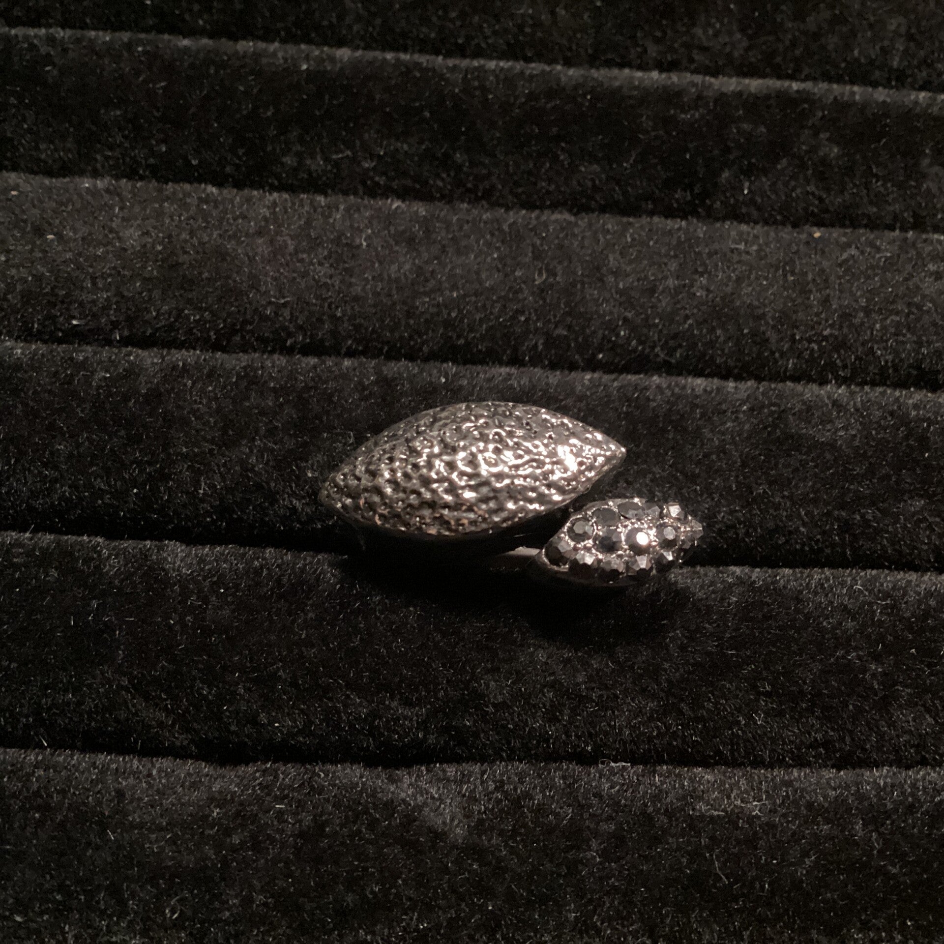 Ring uit 2 delen, gehamerd en zwarte strass maat 16