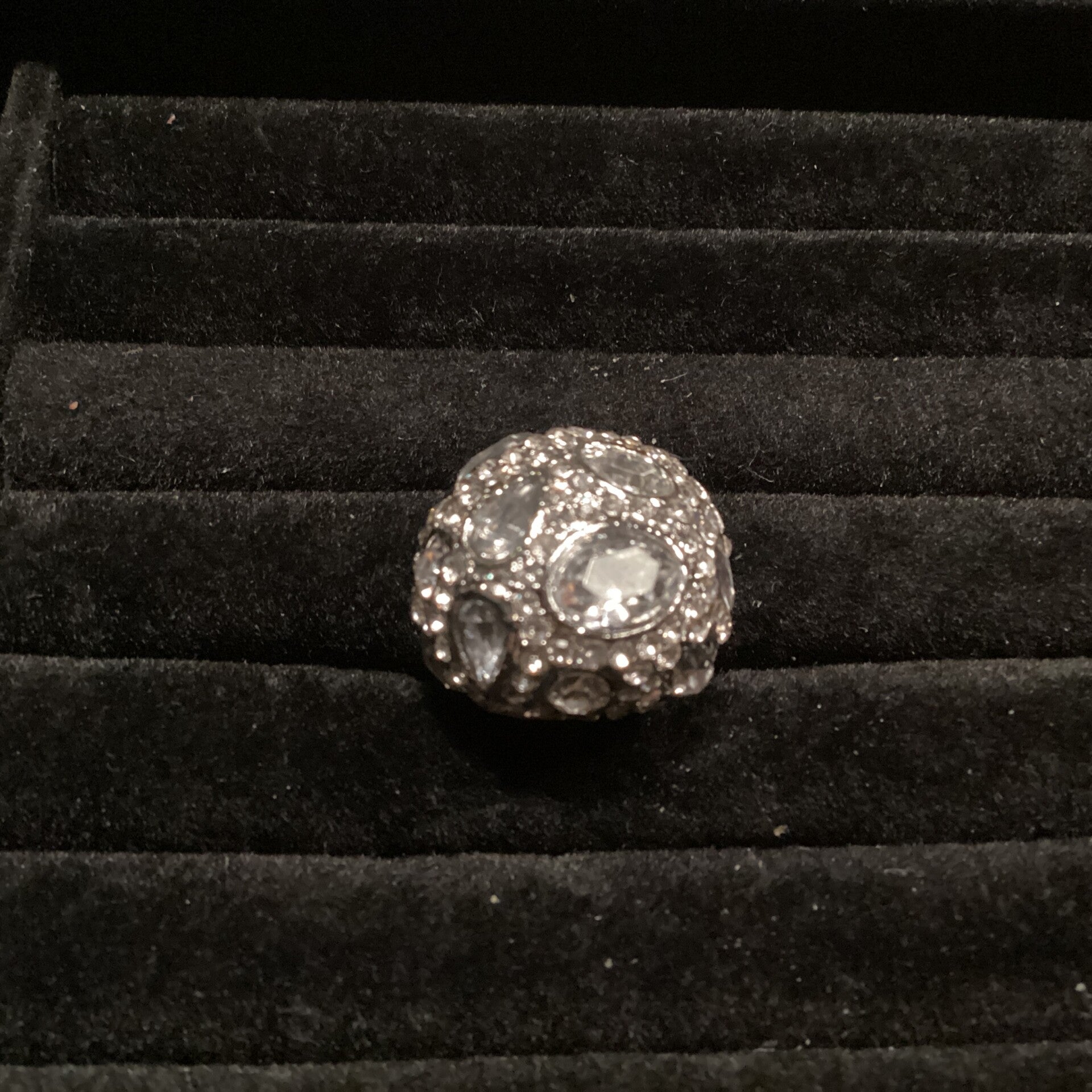 Ring met grotere strasstenen tussen kleintjes, maat 20