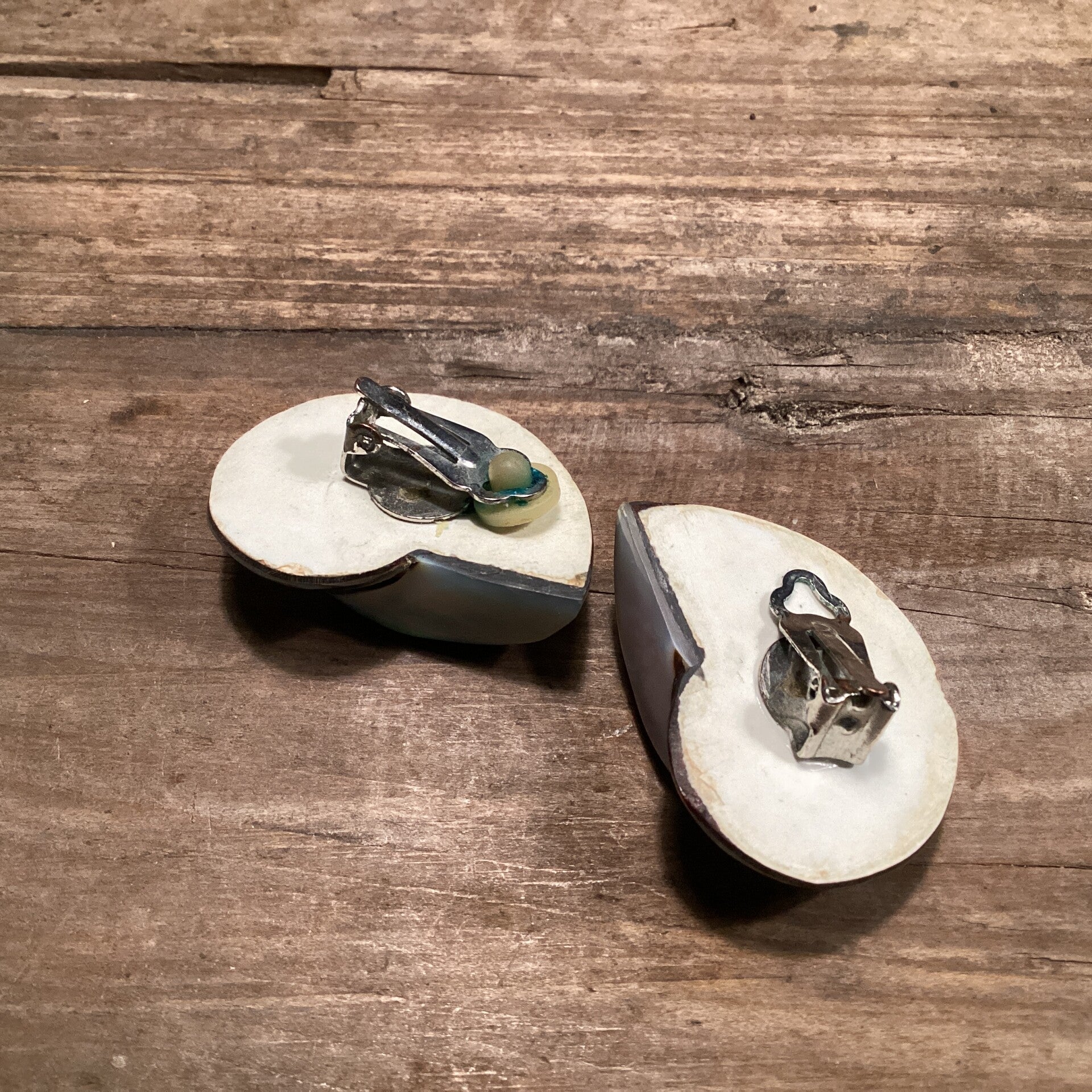 Retro parelmoer schelp oorbellen gerepareerd, 4 cm