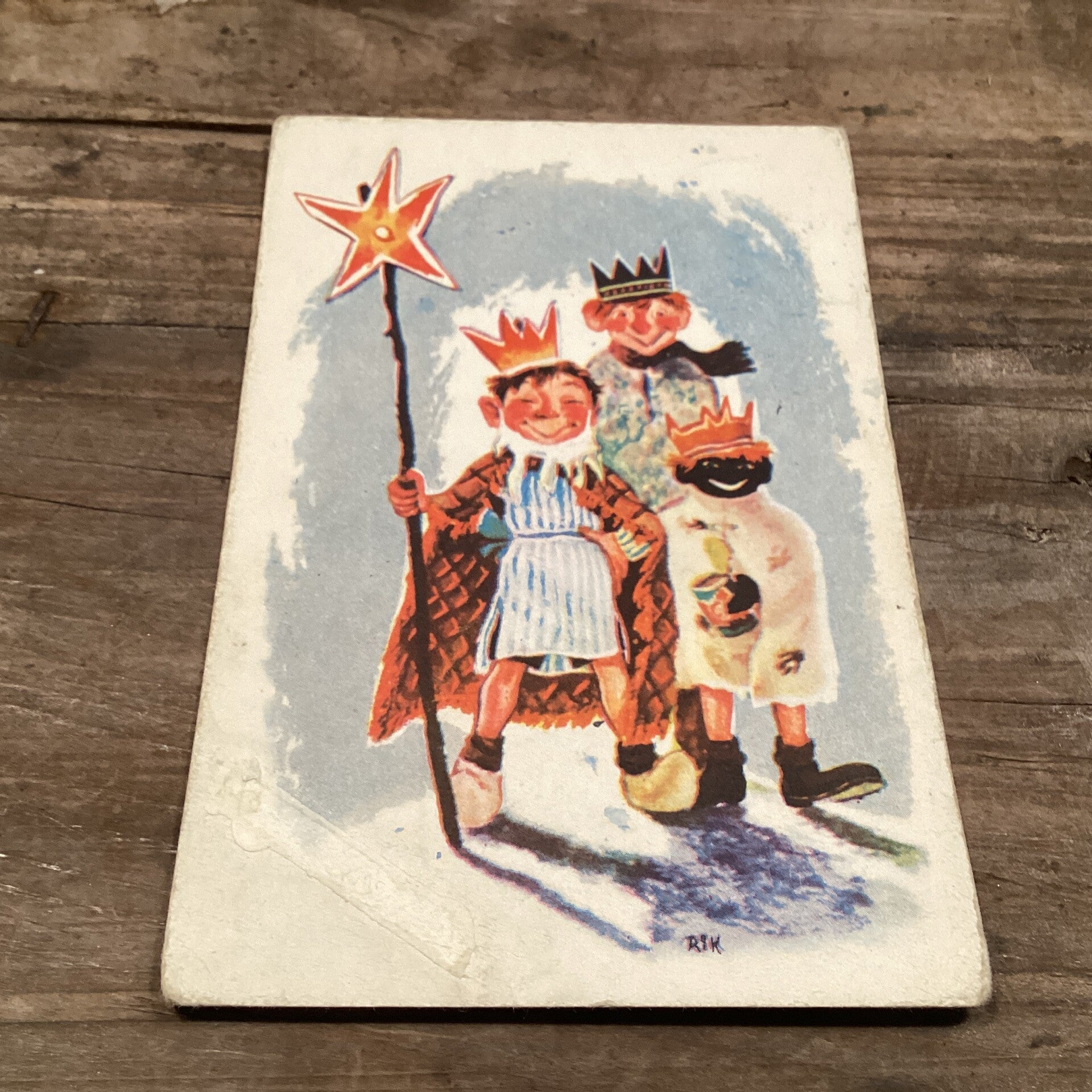 Antieke nieuwjaarskaart 3 koningen