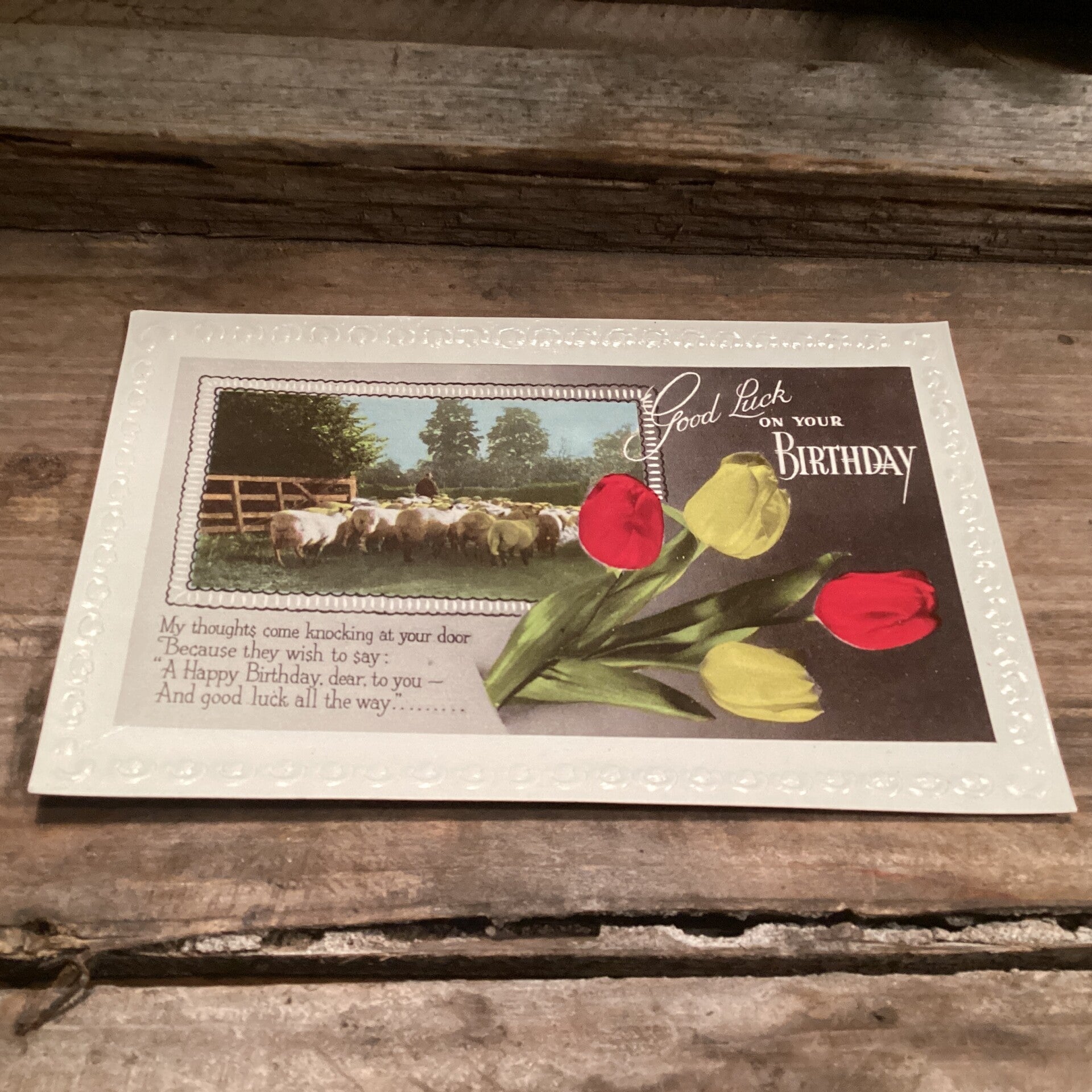 Vintage engelse verjaardagskaart met reliëfrand, onbeschreven