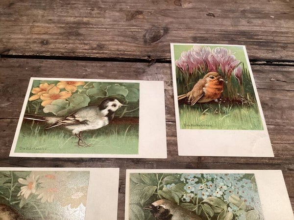 Set van 4 antieke vogelkaarten begin 1900 onbeschreven