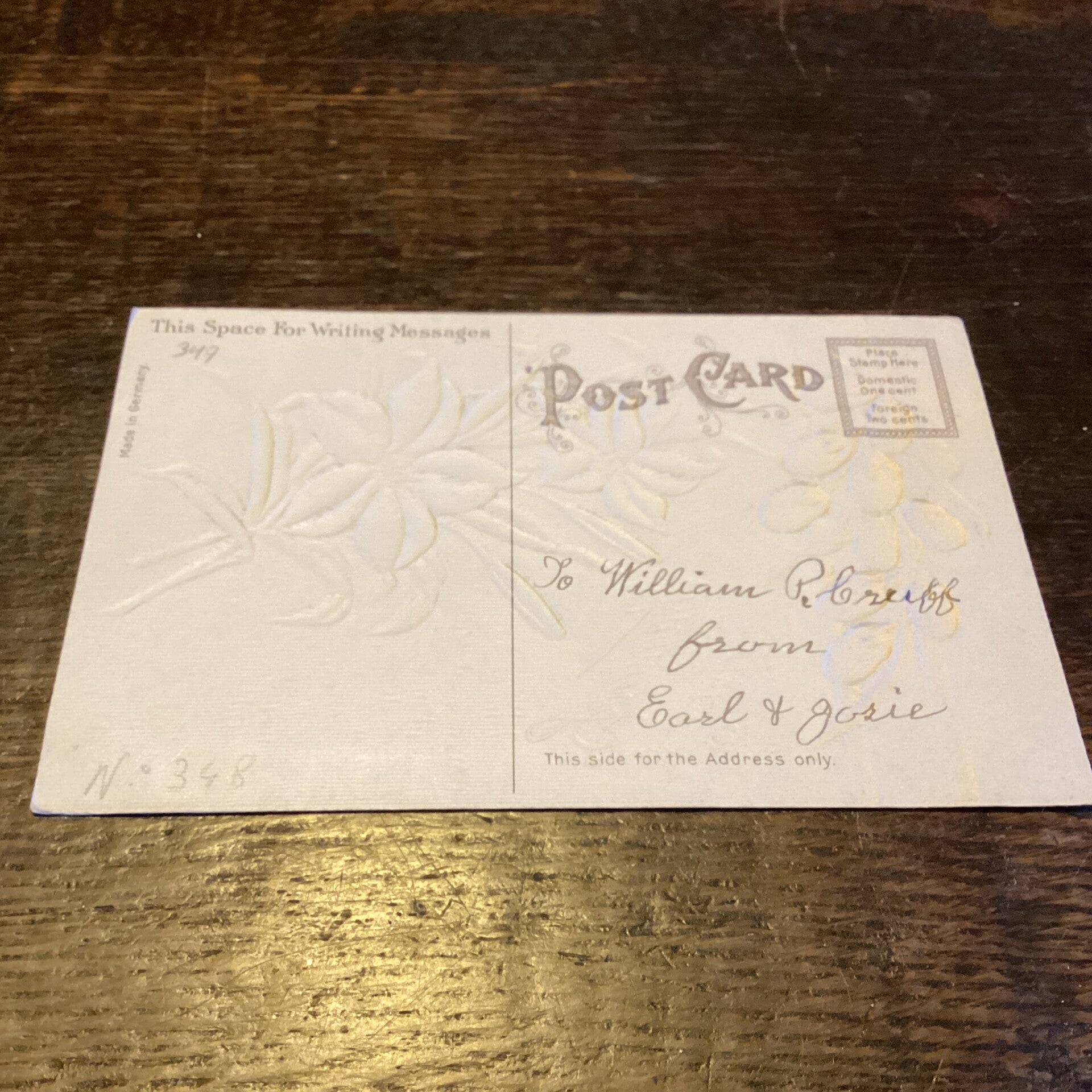 Antieke paaskaart in reliëf, USA, bloemen en katjes,begin 1900