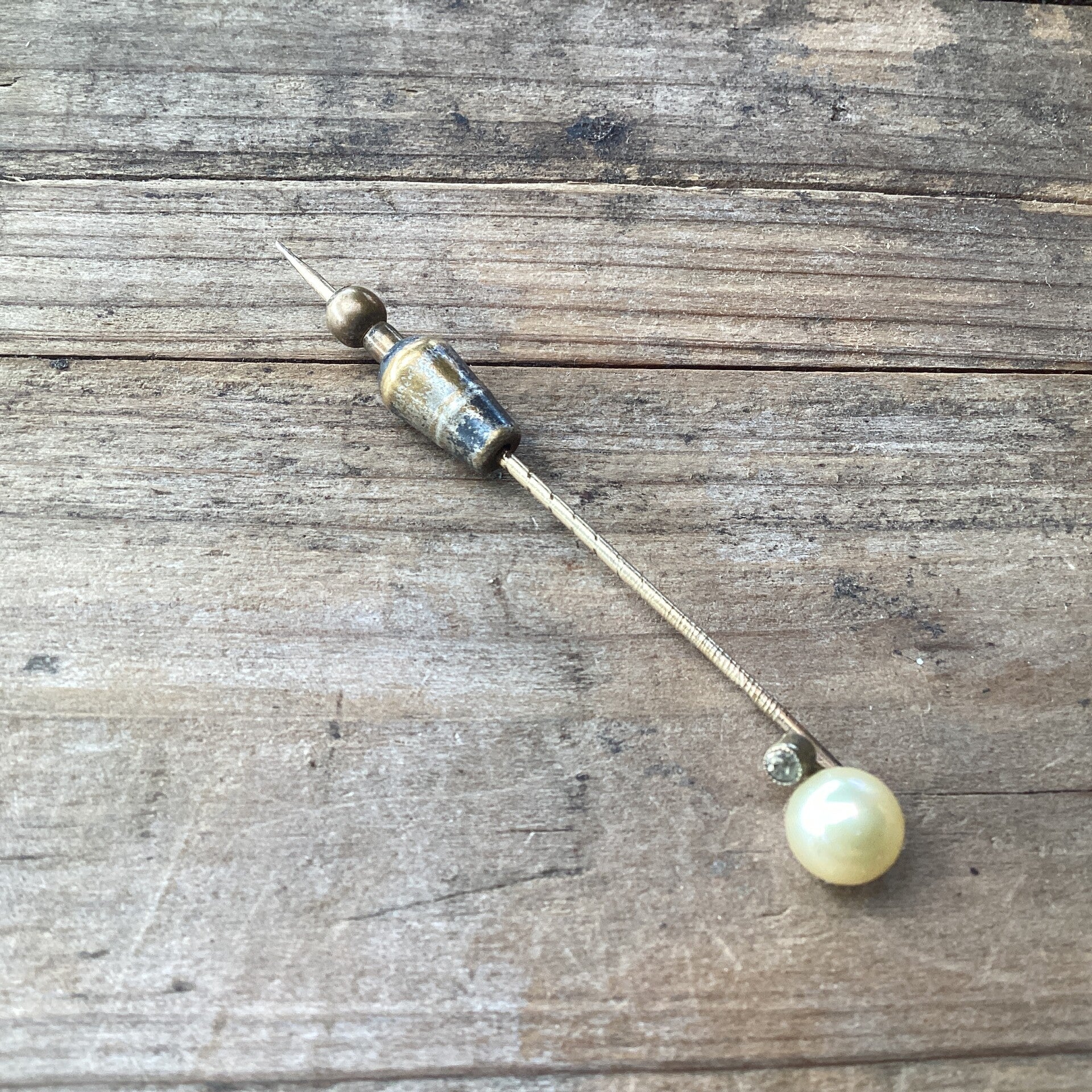 Antieke hoedenspeld met parel en steentje, mooi verfijnd