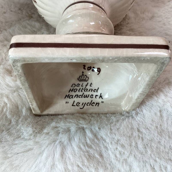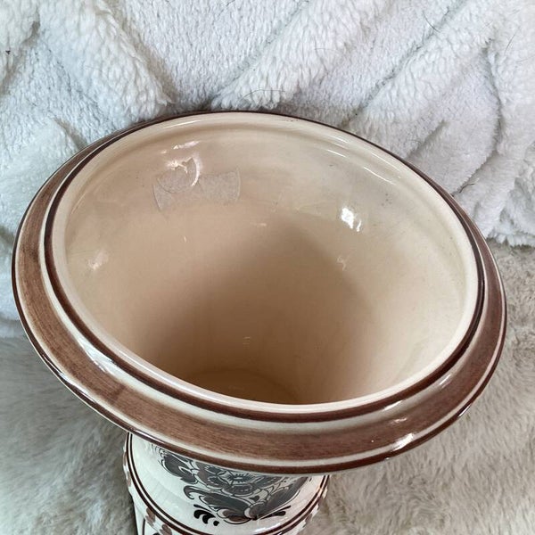 Bruin! Aardewerk Delfts mooie puntgave oude vaas op voet, hoogte 30 cm