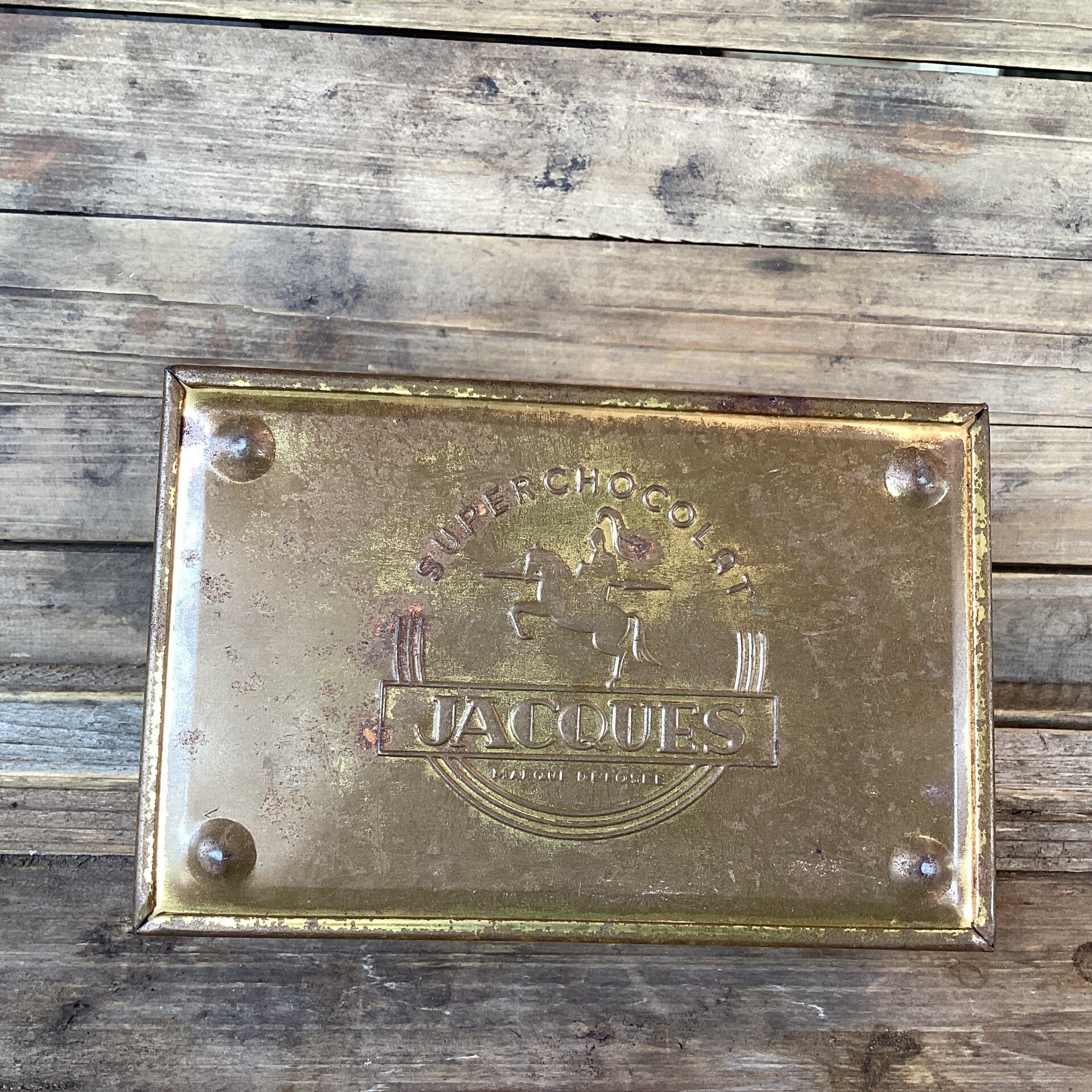 Mooi art deco blik Jacques superchocolat 16x11x6 cm met fluwelen inleg