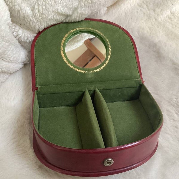 Klein bijouteriedoosje met borduurwerk en spiegel 10x8x4 cm