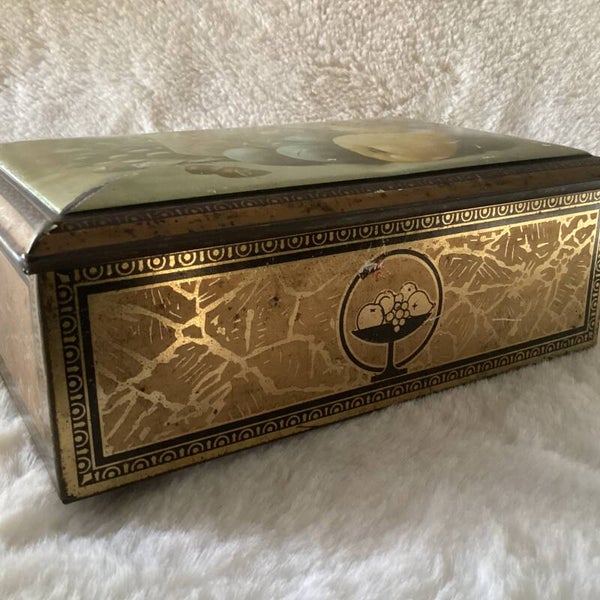 Art nouveau blik met stilleven bol deksel 22x13x8 cm