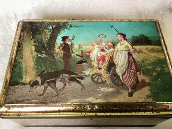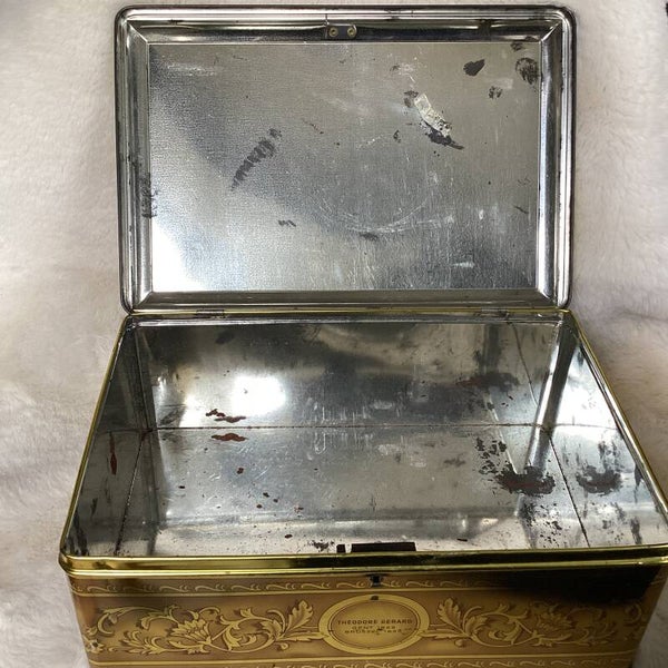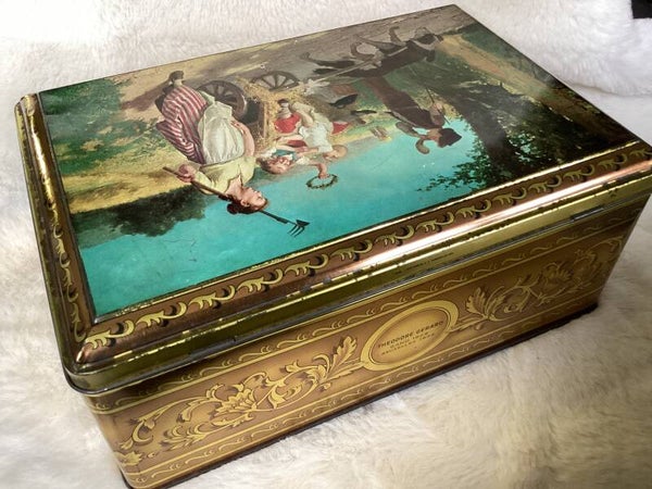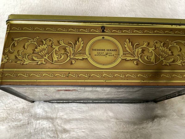 Groot antiek Demaret blik met voorstelling van Theodore Gerard 30x20x12 cm