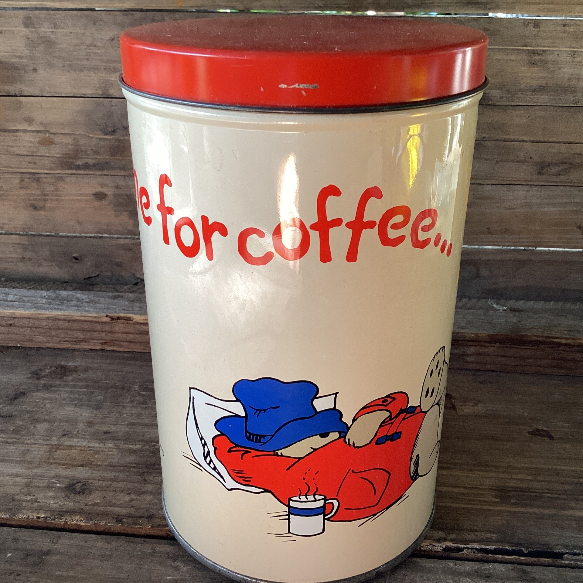 Vintage blik Douwe Egberts, beertje Paddington koffieblik 11x17 cm