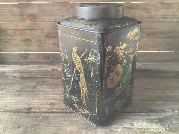 Antiek theeblik, oosterse vogels, zeer oud, 17,5x10x10 cm