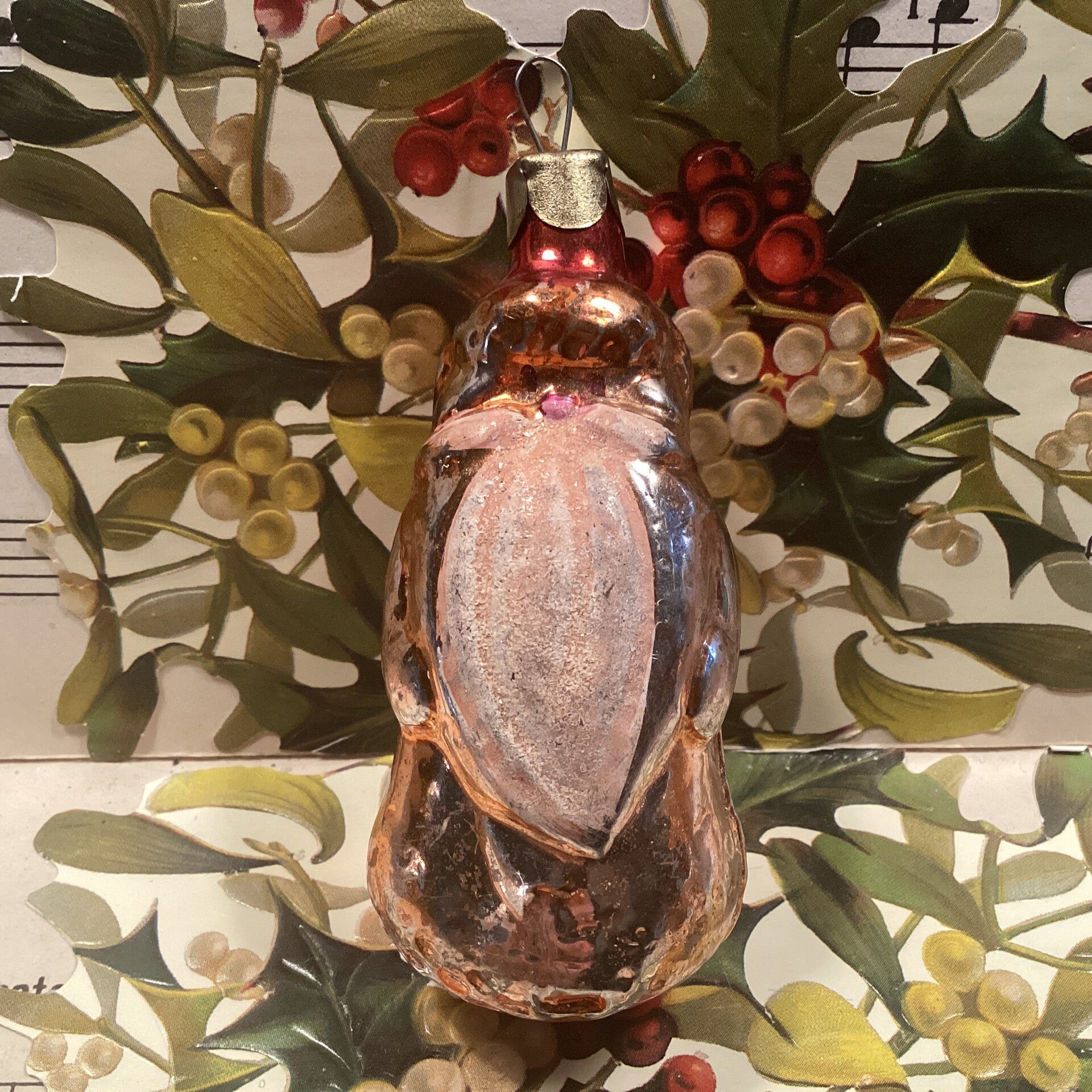 Antieke kerstbal kerstman met gesuikerde baard, 8 cm, Oekraïne