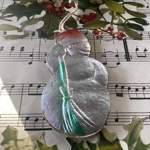 Oude kerstbal uit Oekraïne, platte sneeuwpop, 9 cm