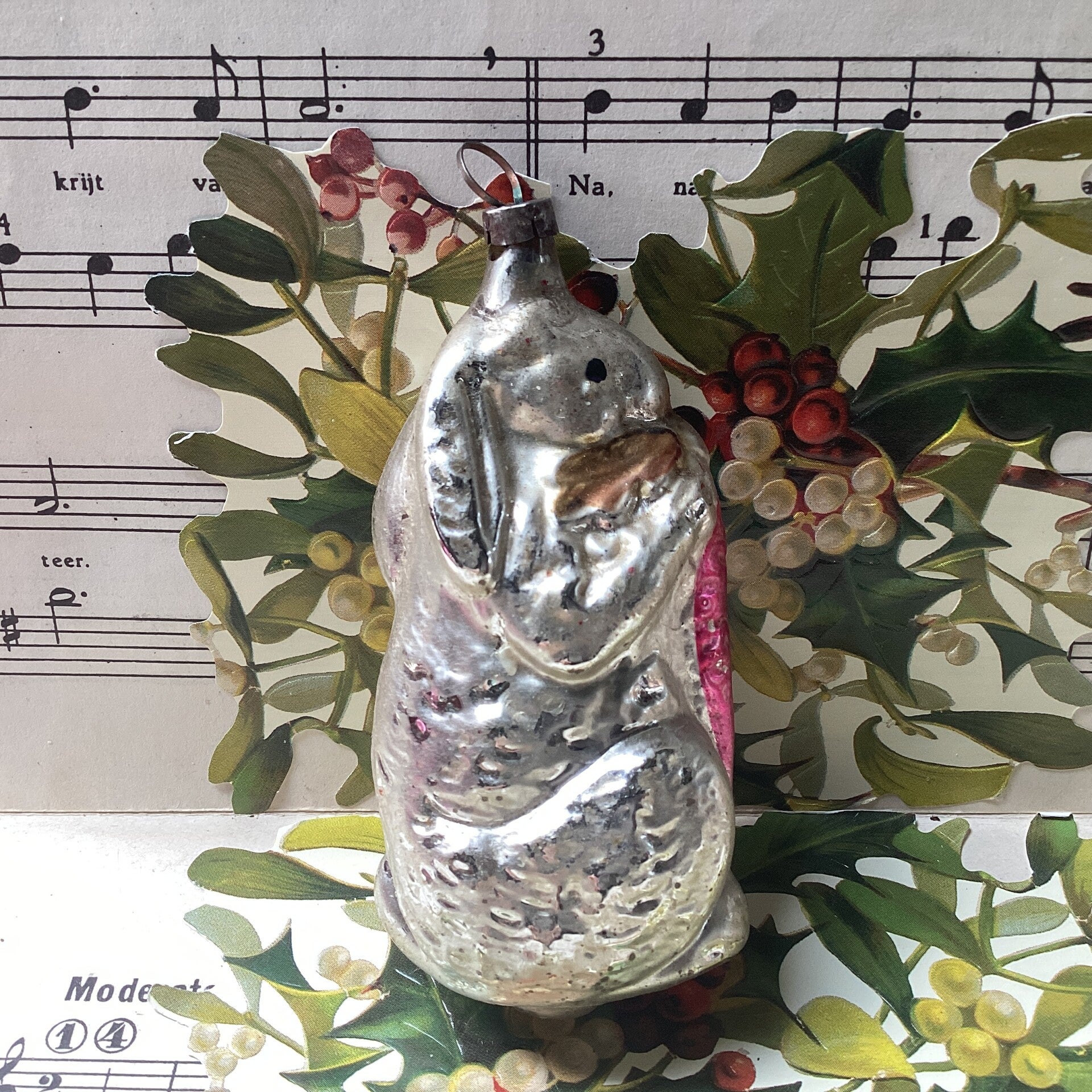 Antieke kerstbal haas met wortel, 9 cm