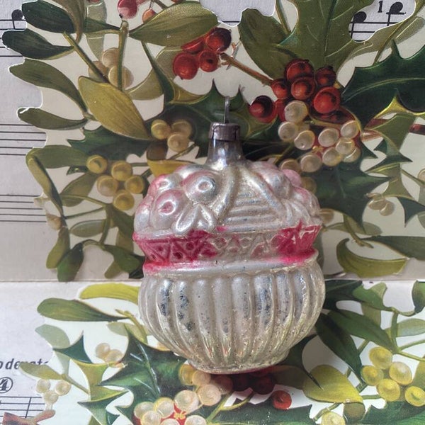 Antieke fruitmand zilver roze gewaxt, beauty! 7 cm