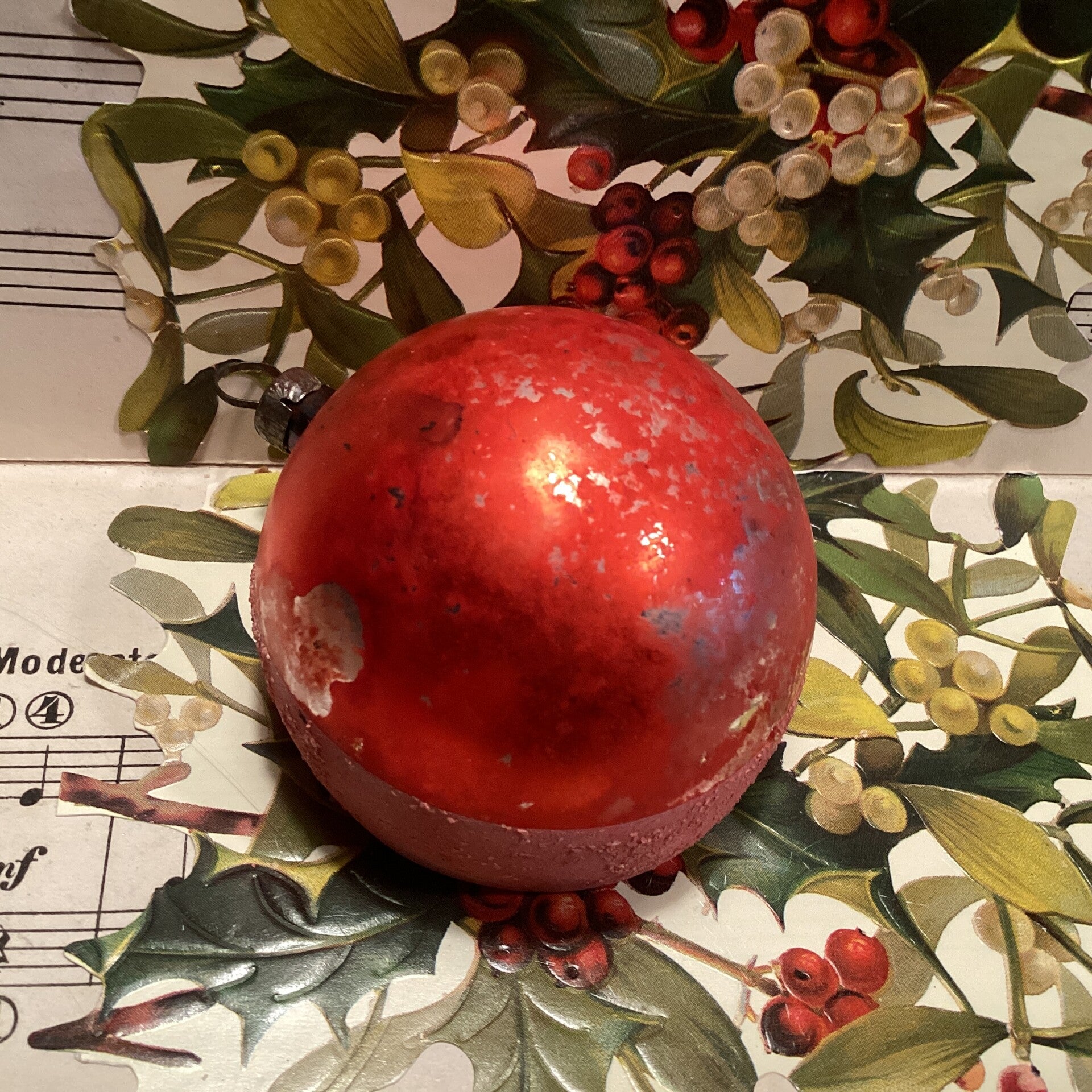 Antiek gewaxte deukbal rood met brede suikerrand, 8 cm