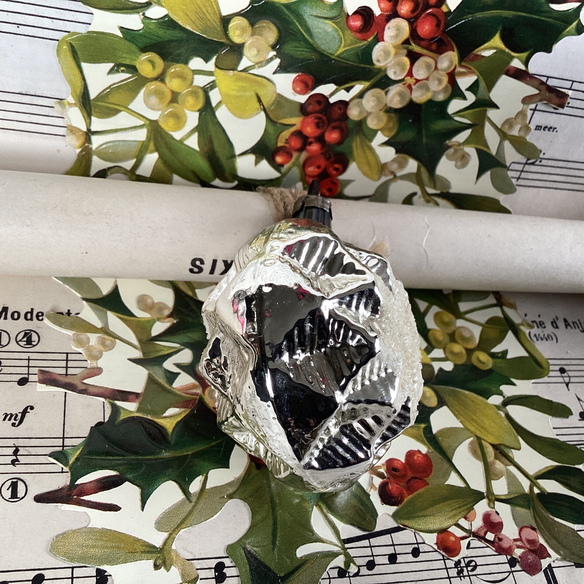 Antieke kerstbal in reliëf, 2 zijden gesuikerde ster, 6x5x3,5 cm