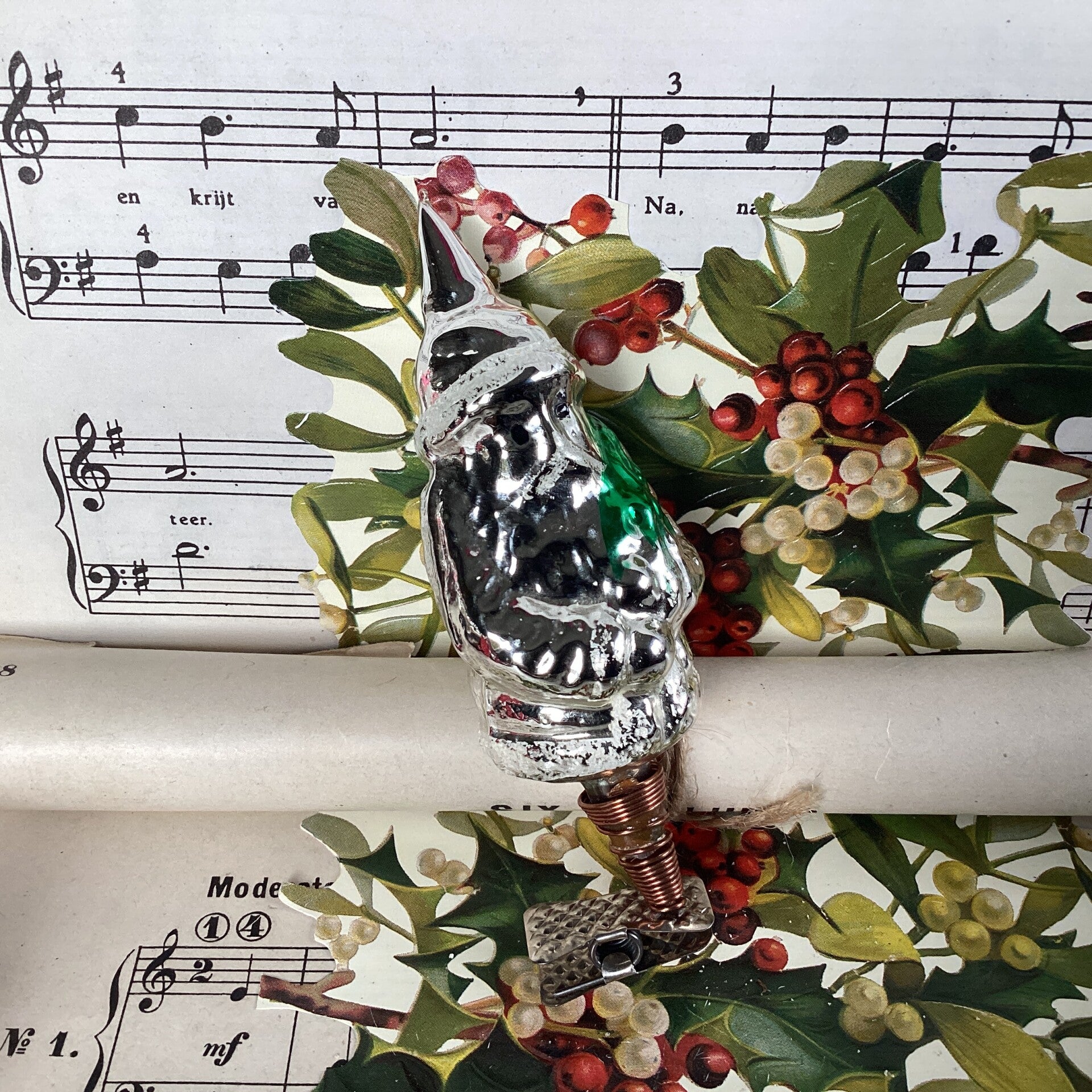 Antieke kerstman op clip, klassieker, 11 cm
