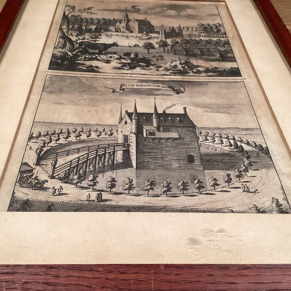 De afbeelding toont een historische gravure van Slot Moermond en Slot Windenburg.