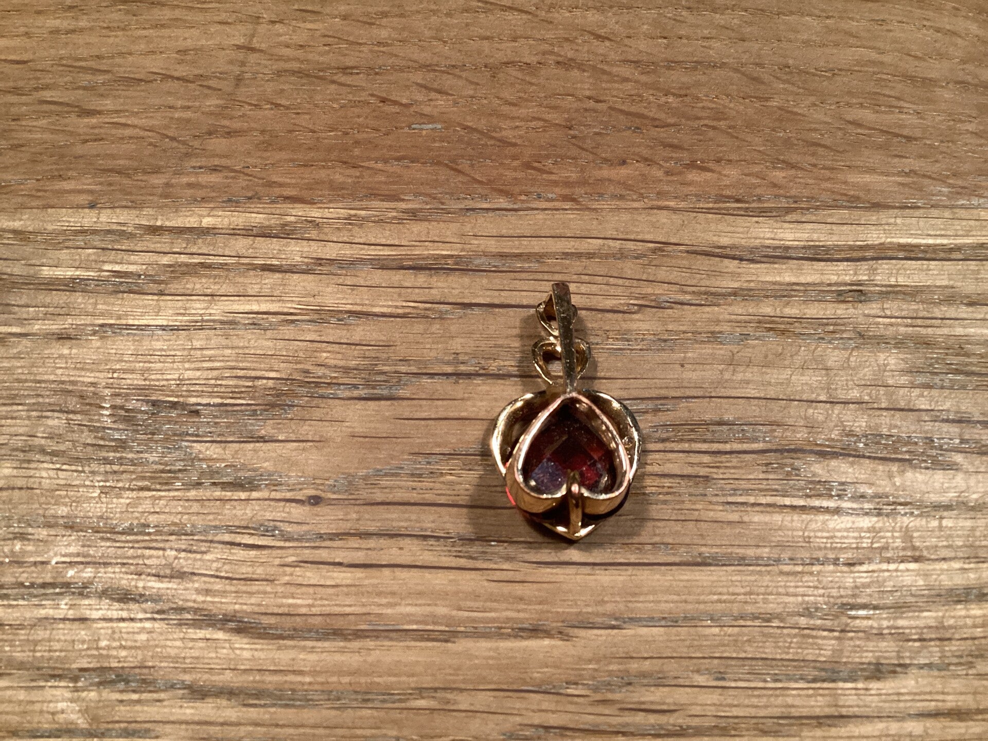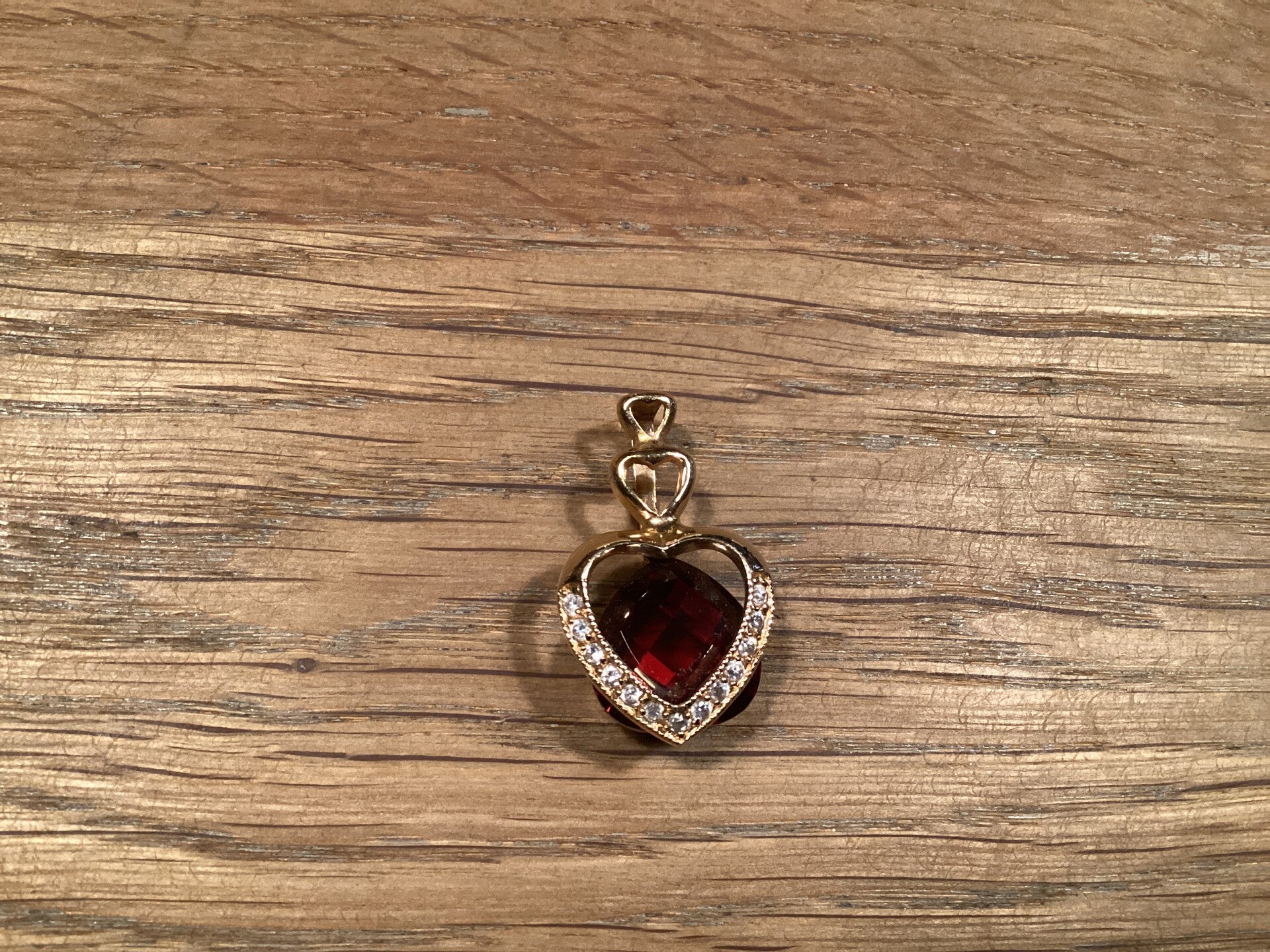 Kettinghanger hart facetgeslepen rode steen, hartjes met strasssteentjes 3 cm