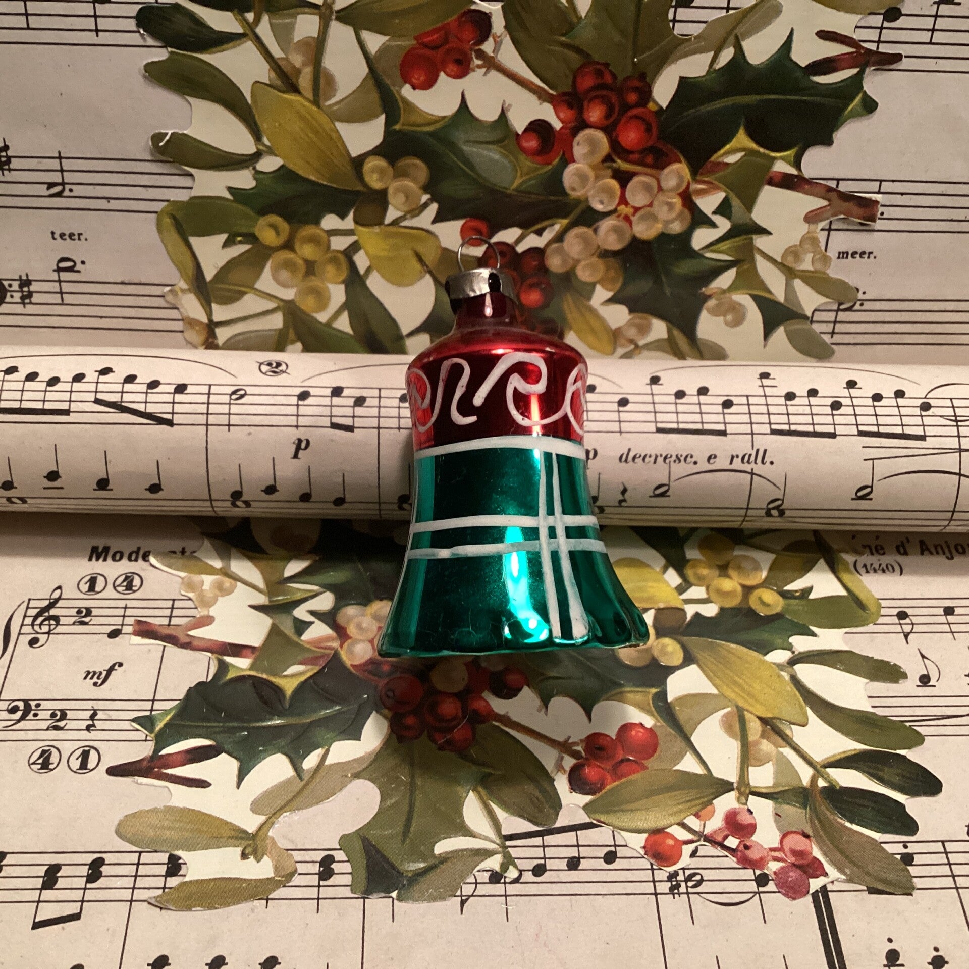 Antieke kerstbal kerst klok 6 cm met klepel, groen rood