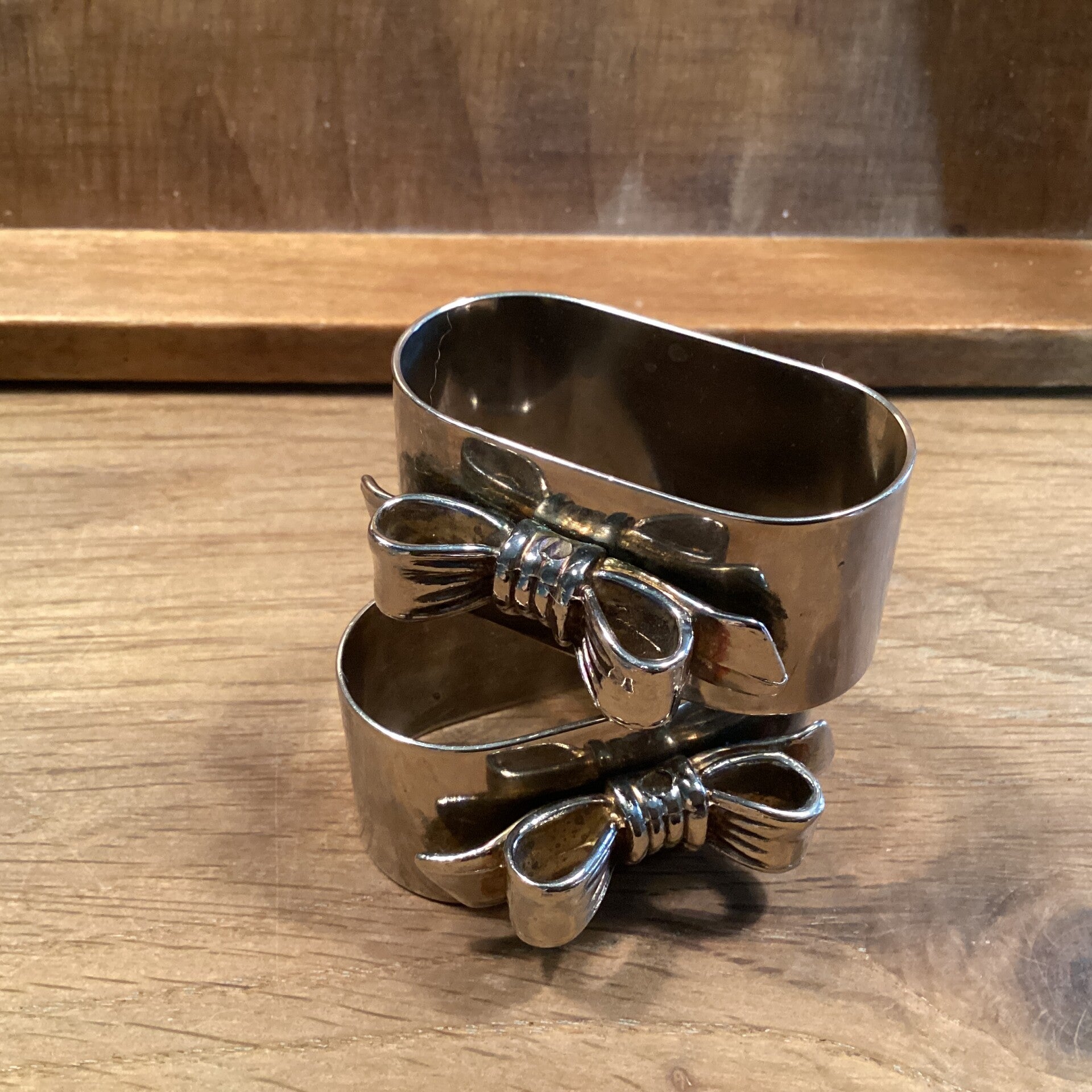 Set van 2 verzilverde servetringen met mooie strikken, 5x3 cm