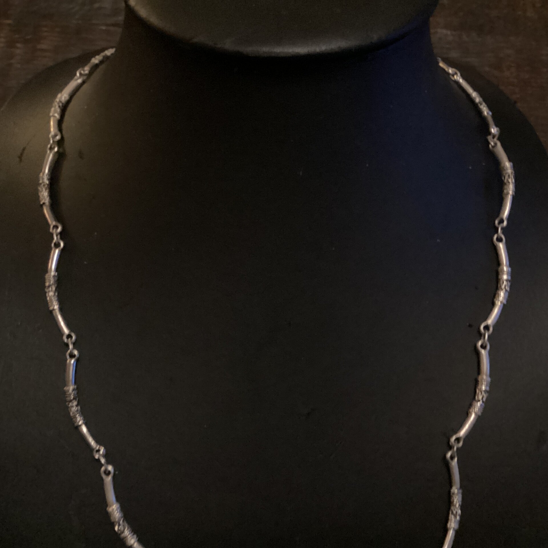Vintage ketting met zilveren bewerkte langwerpige kralen