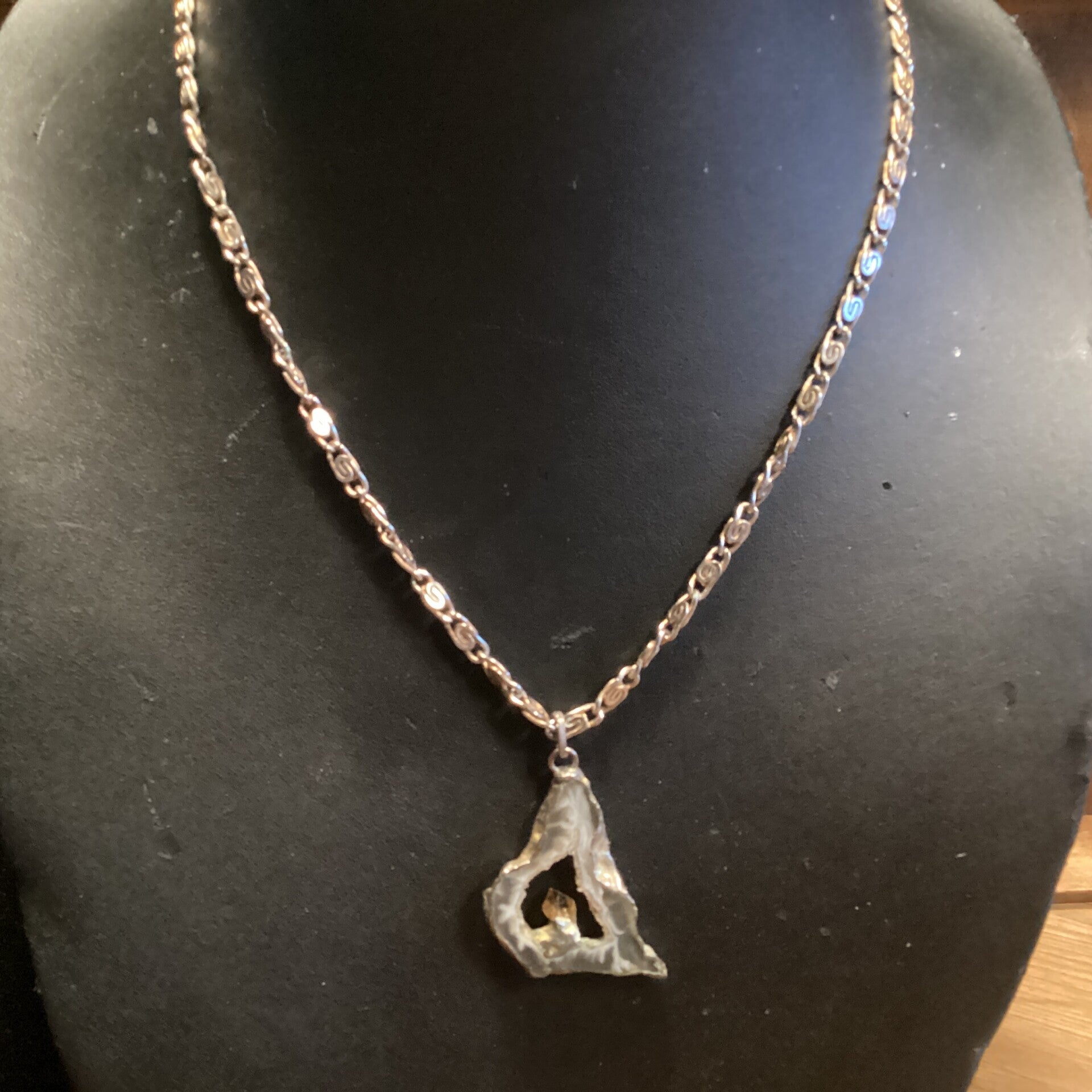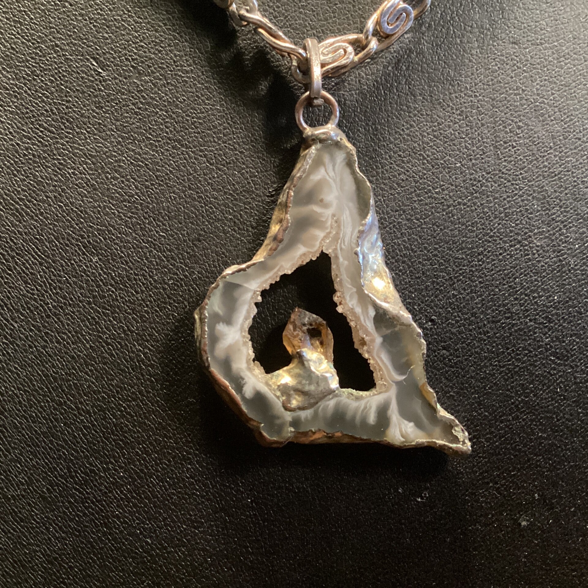 Mooie vintage lange schakelketting met agaatsteen en citrinesteen