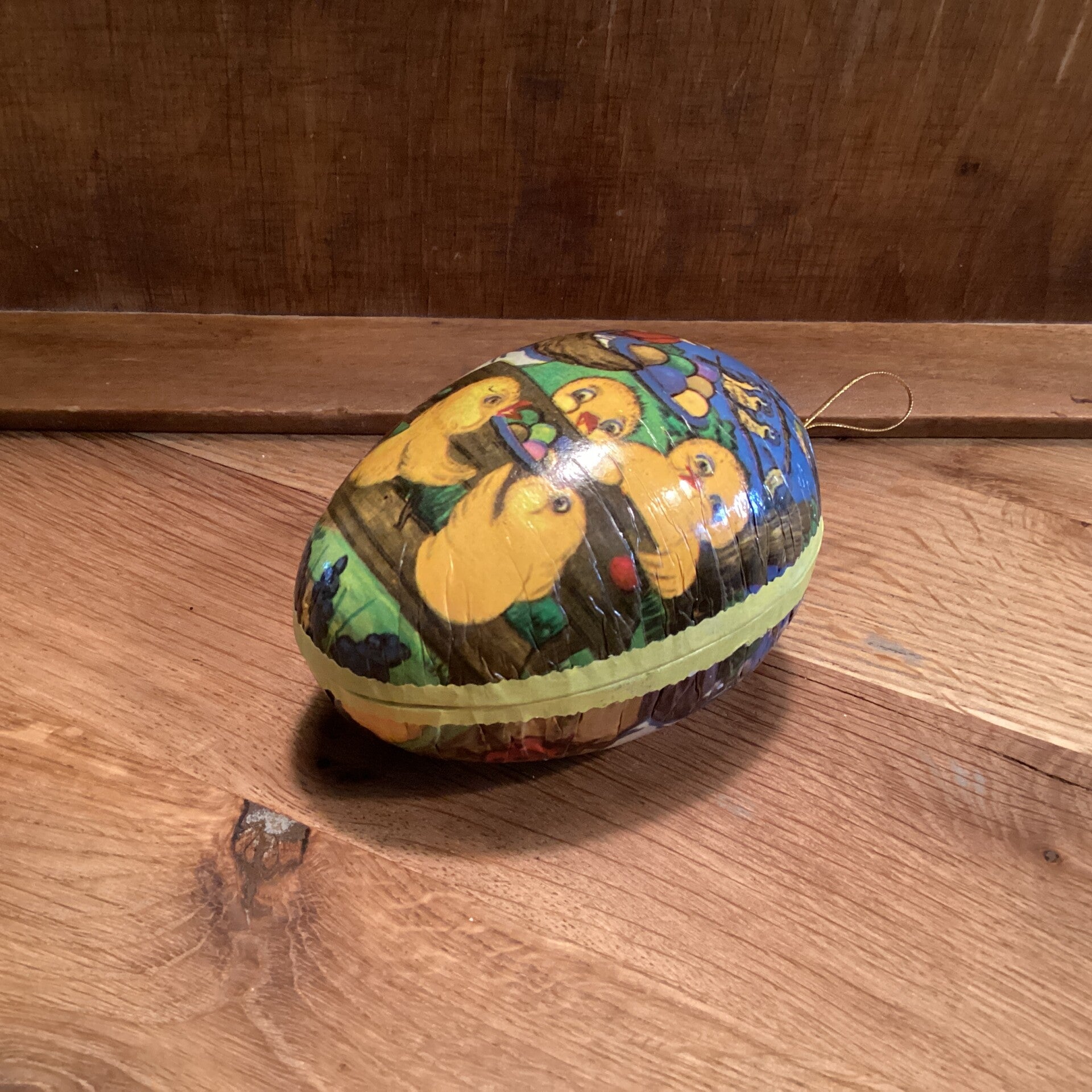 Vintage candycontainer 12x9x9 cm moeder kip, kuikens, eitjes
