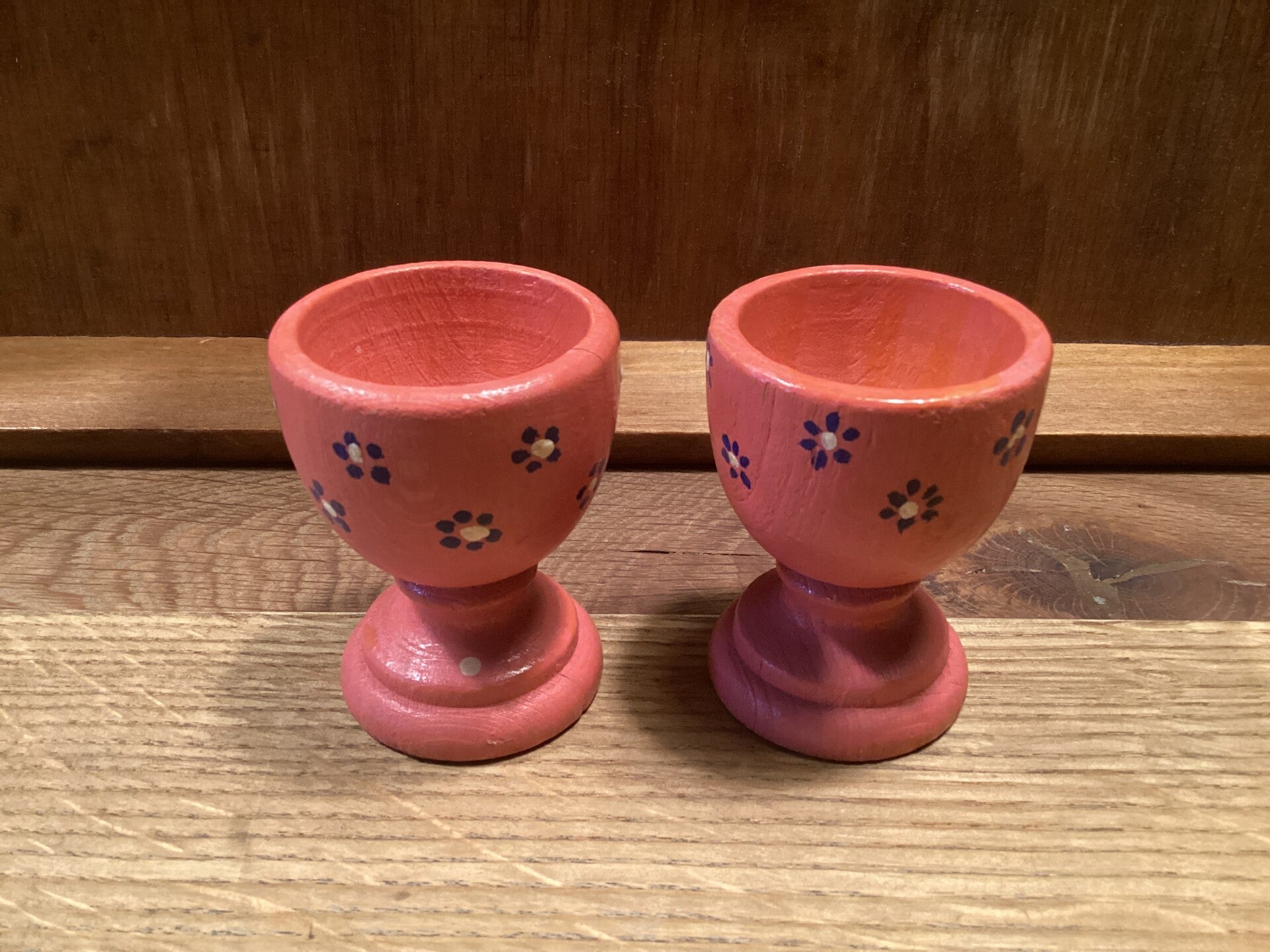 2 houten eierdoppen handbeschilderd met bloemetjes
