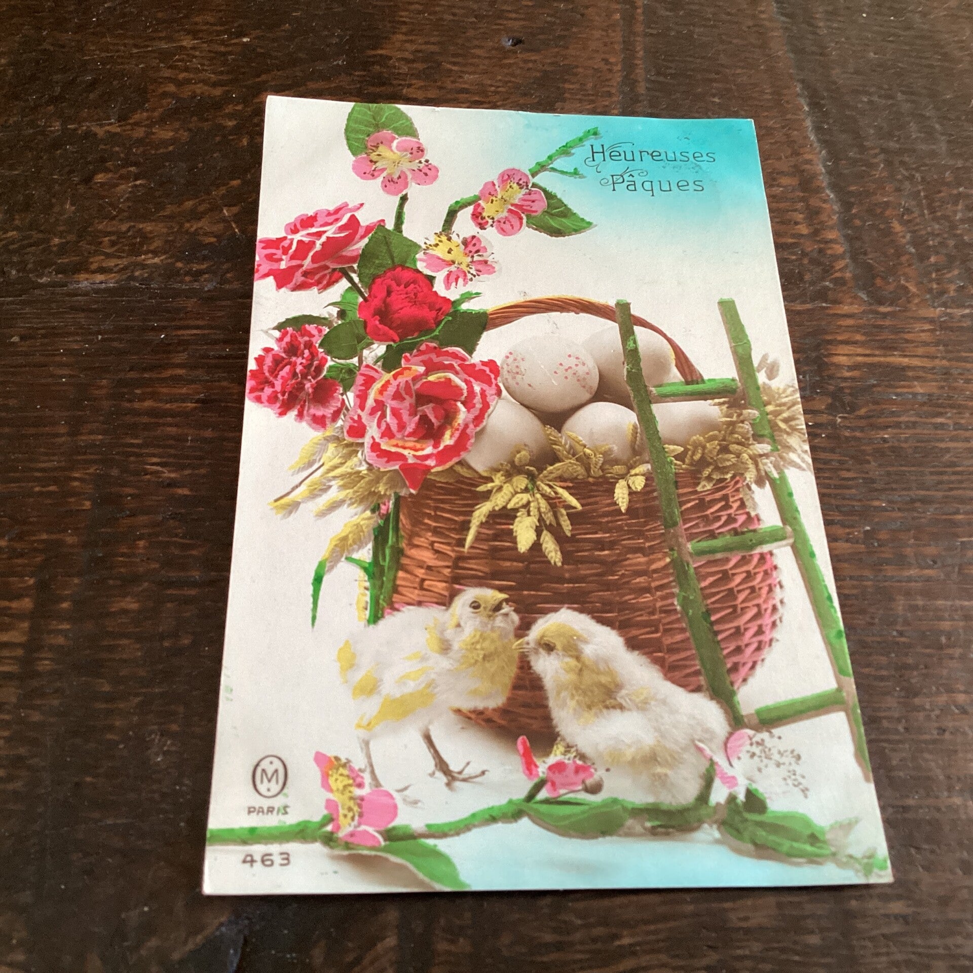 Antieke paaskaart met kuikens, 1926
