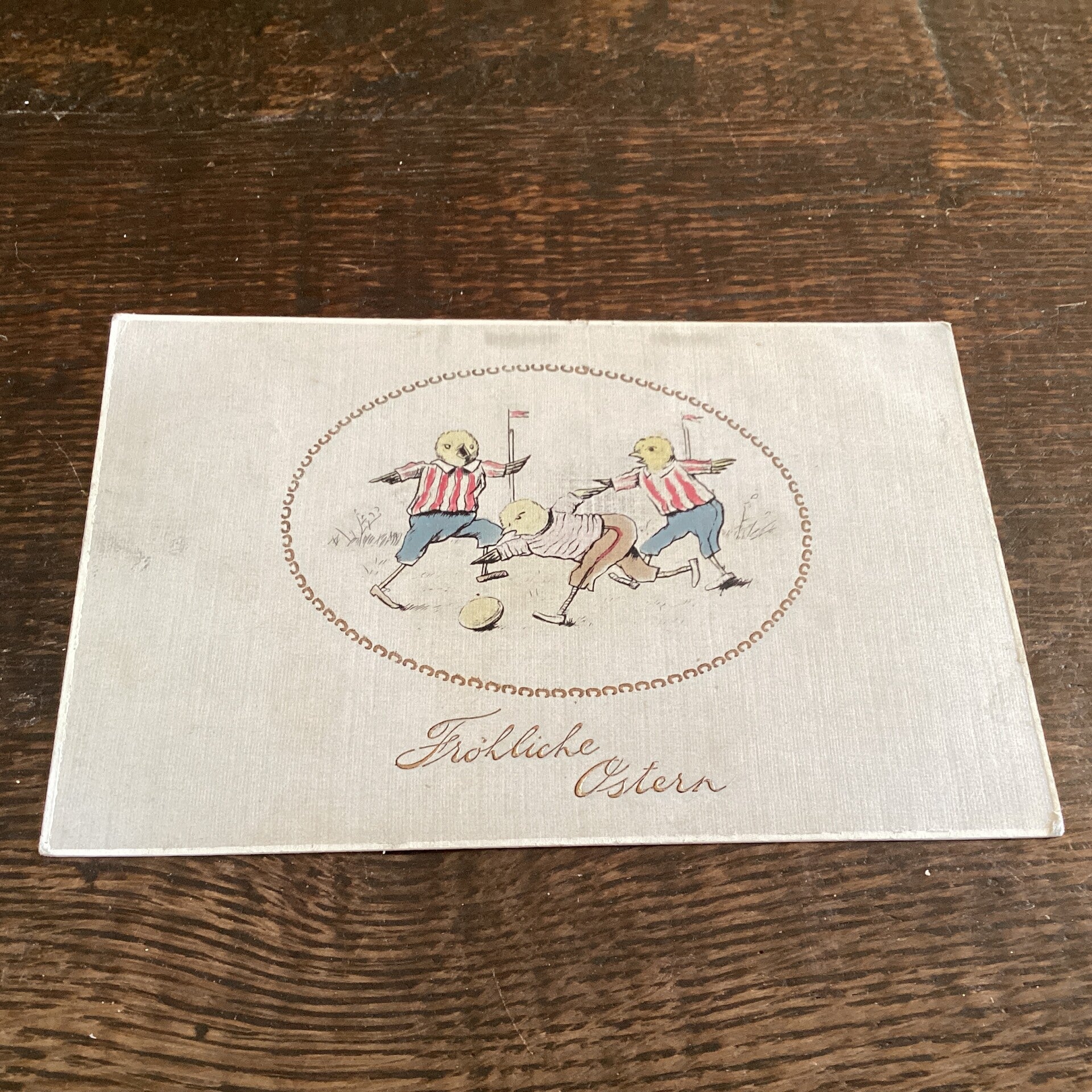 Antieke paaskaart met kuikens, sportend, 1913