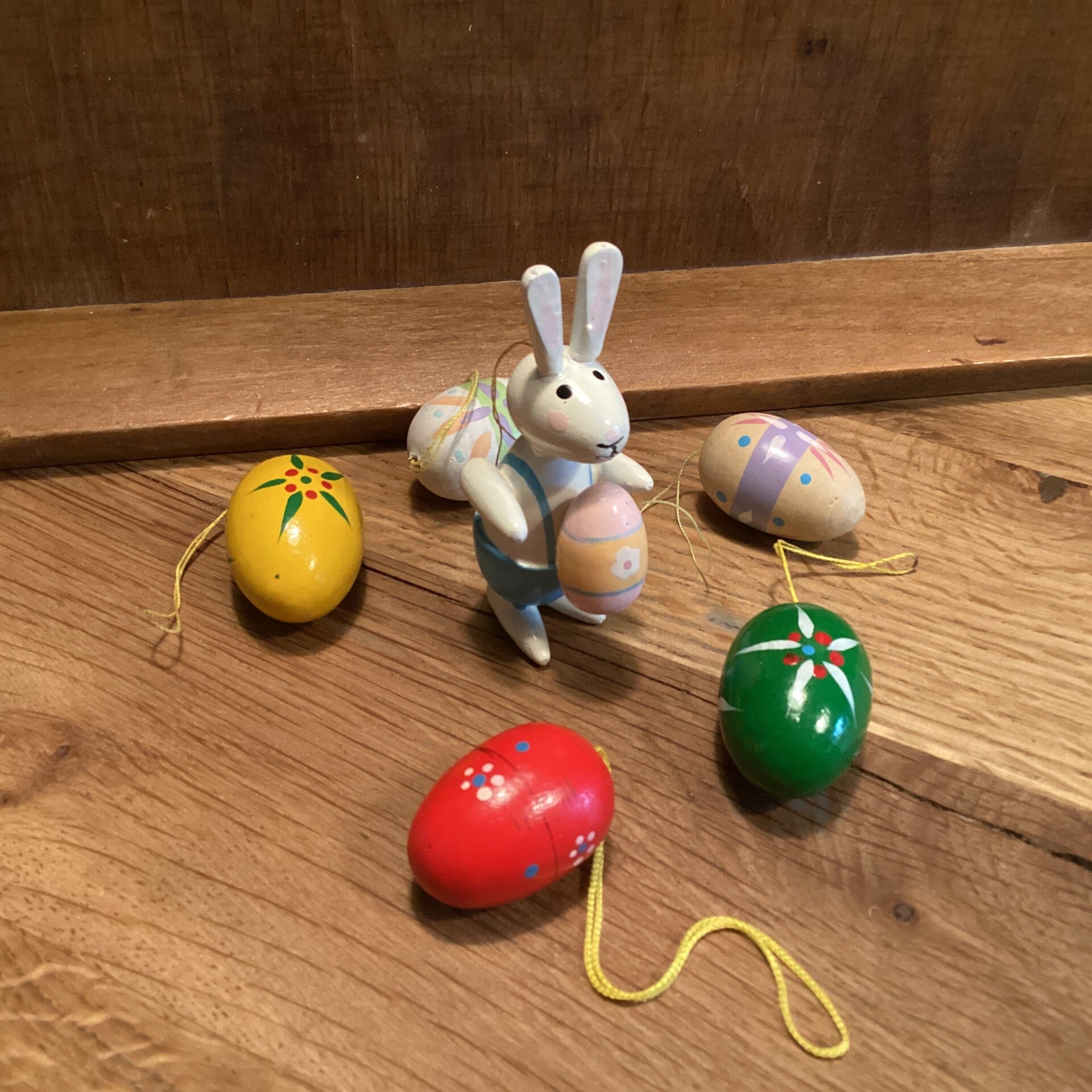 Setje 22 houten paashaasje met 5 houten eitjes 2-6 cm voor aan de paastak