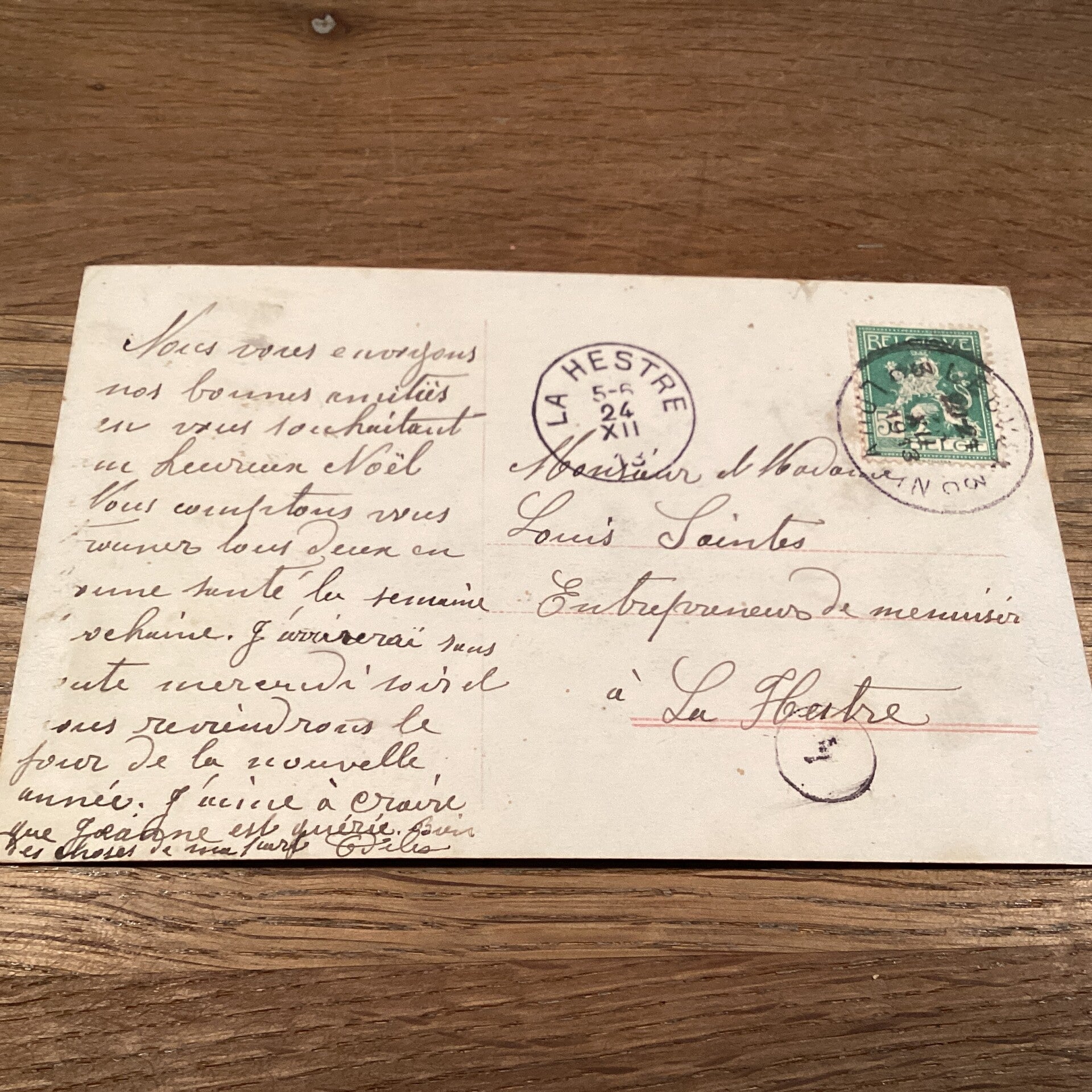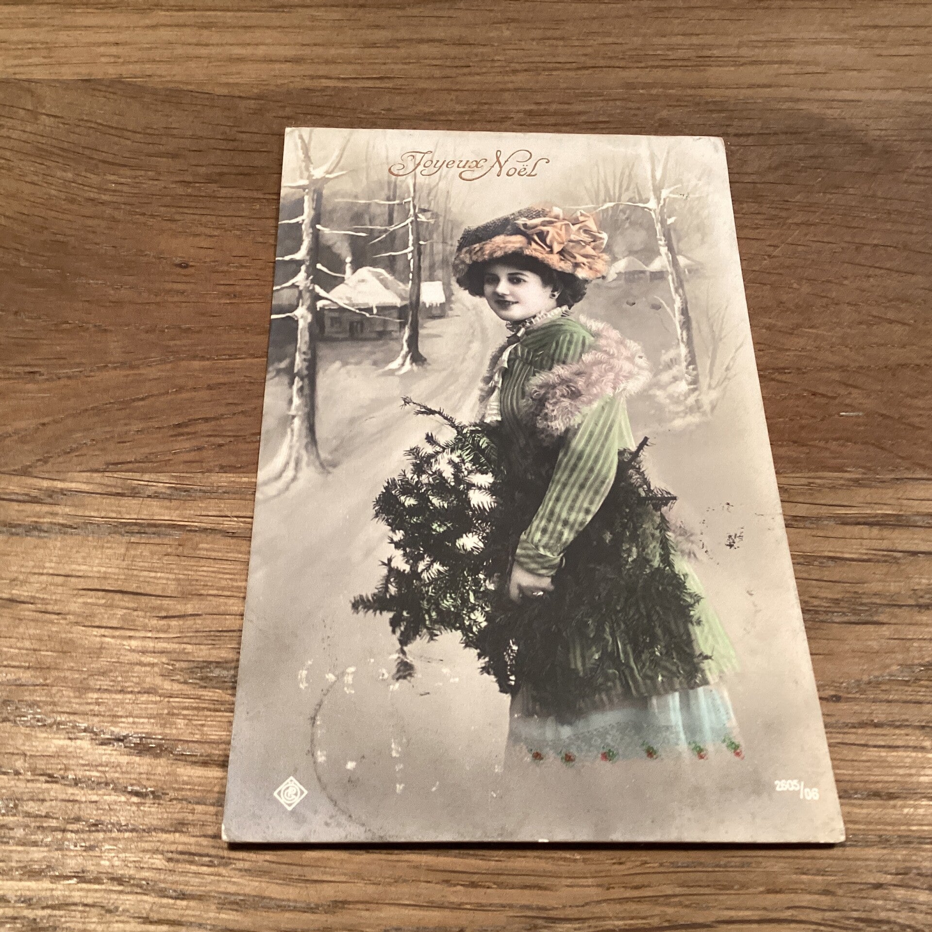 Antieke kerstkaart vrouw, 1913