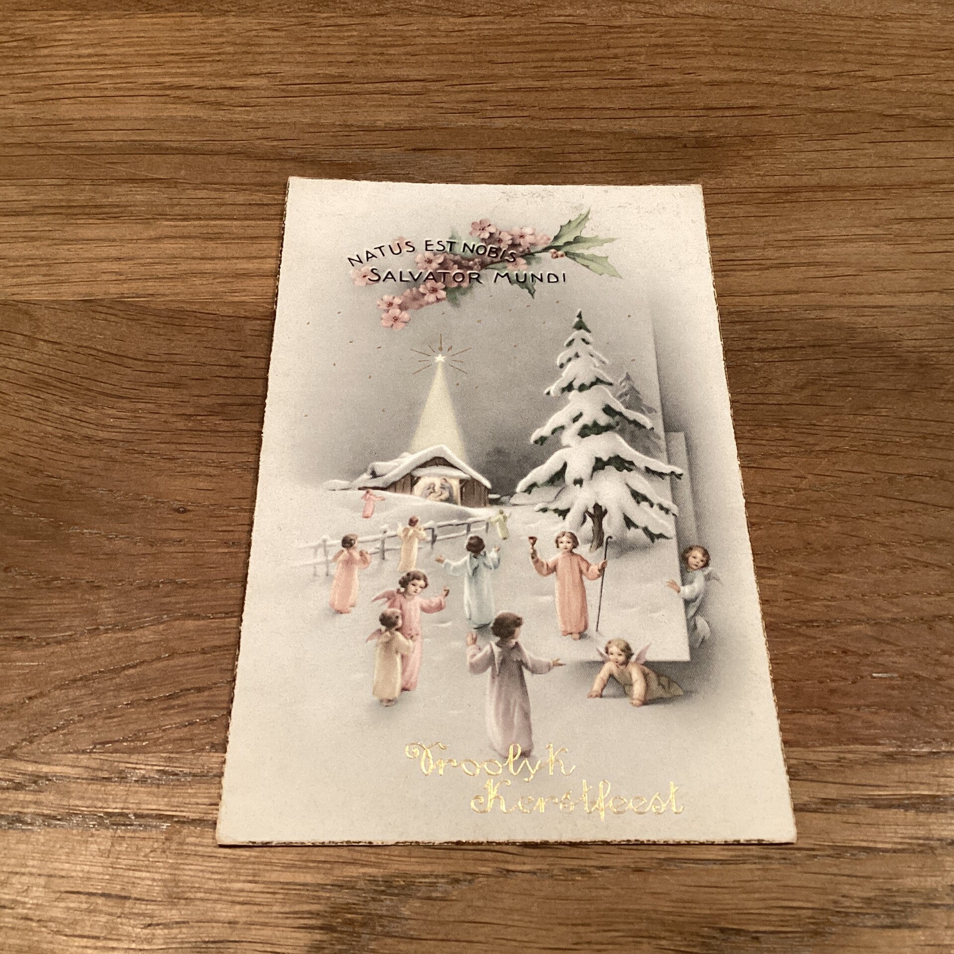 Antieke kerstkaart engelen, uit 1949